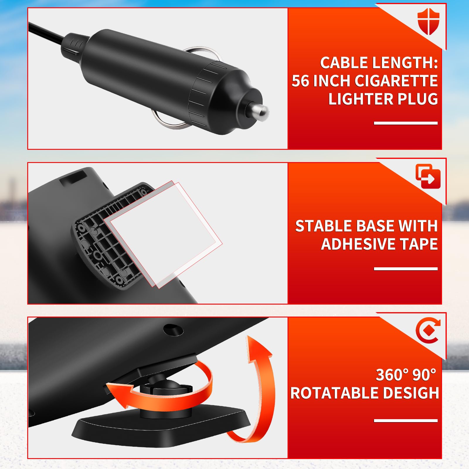 KAOLALI Chauffage de Voiture, 12 V 150 W 2 en 1 De plus, le ruban adhésif double face inclus garantit une installation sûre, permettant au ventilateur de rester fermement dans votre véhicule, qu'il s'agisse d'une voiture familiale, d'une camionnette, d'un coffre, d'un SUV, d'un RV ou même d'un bateau Ventilateur Chauffage 2 En 1 KAOLALI Chauffage De Voiture, 12 V 150 W 2 En 1 Chauffage Chauffage Voiture 12V 【Facile à utiliser】Alimenté par la prise allume - cigare 12V, facile à brancher via la prise allume - cigare, appuyez sur le ventilateur ou le commutateur thermique pour commencer à travailler. Chauffage de voiture Portable 12V 150W, ventilateur 2 en 1, reoidissement à 360 degrés, dégivreur de pare-brise automatique, chauffage Anti-buée · Type de... Refroidisseur et chauffage 2 en 1?Ce chauffage voiture allume cigare de 12V et 150W a des fonctions de chauffage et de refroidissement. Il élimine rapidement le givre, le brouillard et la brume de votre voiture, de votre pare - brise, de vos vitres latérales et de vos vitres arrière, offrant une vision claire de votre conduite et vous... 【Large application】Le chauffage de voiture plug - in est largement utilisé dans les voitures, les camions et les véhicules. 【Sûr et durable】Ce réchauffeur de voiture portable est fabriqué à partir de plastique dur résistant à la chaleur ABS et polymère et utilise un câble en cuivre pur de haute qualité qui n'est pas nocif pour les batteries de voiture ou les circuits automobiles. Convient pour tous les véhicules 12V dans la voiture, le camping et les voyages, le désembuage / dégivrage en hiver et rester au frais en été. Vous pouvez régler le chauffage pour que le vent chaud souffle où vous le souhaitez, enlever facilement le brouillard ou le givre sur le pare - brise de votre voiture, rendre la vision de la conduite claire et assurer la sécurité de la conduite Équipé d'un évent à haute température, il peut être chaud en 30 secondes et facile à utiliser 【Refroidisseur et chauffage 2 en 1】Ce chauffage voiture allume cigare de 12V et 150W a des fonctions de chauffage et de refroidissement.