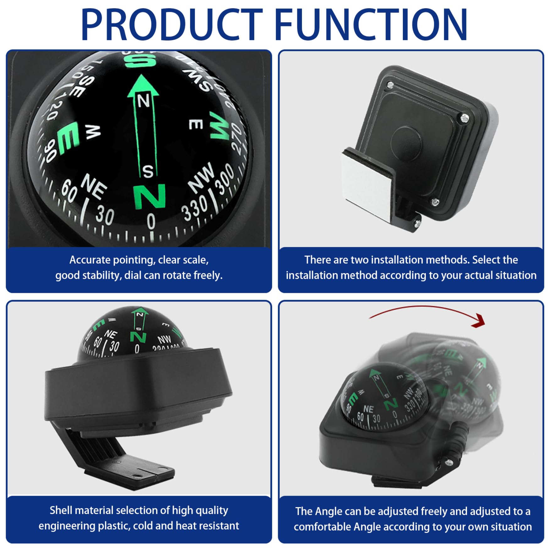 Propriétés des matériaux] La boussole de voiture est fabriquée en plastique de haute qualité résistant aux intempéries et durable, haute fiabilité, avec le pointeur pointant vers le cadran, haute précision et facile à lire.[Ventouse Fixe] Boussole de support portable avec aspiration sur le fond pour le montage du tableau de bord de camion de voiture.[Petit et pratique... Peut être installé dans la cabine, le côté d'un tableau de bord ou tout endroit où n'affecte pas le conducteur. Paquet inclus : 1x boussole de voiture Boule De Boussole De Voiture Boussole De Voiture, Boussole De Bateau, Boussole De Tableau De Bord De Voiture Boussole De Pare Brise De Voiture Boussole De Bureau 85381430 Meilleur Boussole De Voiture Boussole Pour Voiture Tableau De Bord Voiture Navigation Boussole Auto