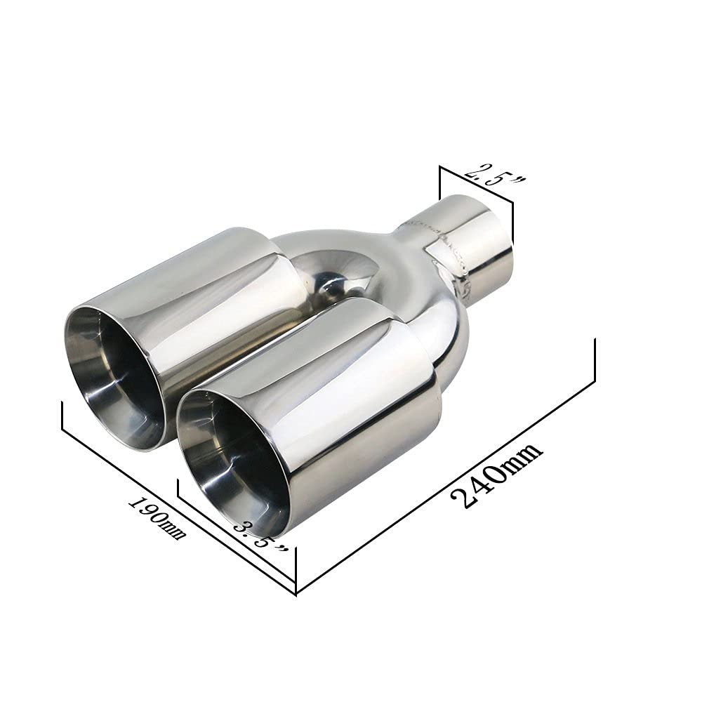 Remplacement universel : le double embout de silencieux d'échappement est livré avec un tuyau d'entrée de 63 x 70 mm et un double tuyau de sortie de 76 x 150 mm... Ces embouts d'échappement sont fiables et faciles à monter soi-même. Ces embouts facilitent la mise à niveau du système d'échappement de votre voiture sans l'aide d'un professionnel. Accessoire Tuning échappement Voiture Embouts D'échappement 2,5 - Tuyau D'échappement De Voiture - En Acier Inoxydable - Bleu Chromé - Embout D'échappement Droit Universel Embout Echappement Pot D'eau Ces embouts d'échappement élégants rehausseront l'apparence et la fonctionnalité de votre système d'échappement, créant un look élégant qui s'harmonise avec n'importe quel véhicule. Embout Tuyau De Sortie Pot D'éChappement,5.3-3.8cm DiamèTre IntéRieur... Matériau : acierDimensions : Standard 2,5 x 4 x 12 (entrée, sortie et longueur totale) ;Convient UNIQUEMENT aux véhicules avec un tuyau d'échappement de 2,5 pouces de diamètre extérieur, quel que soit le modèle (veuillez mesurer et vous assurer que le diamètre extérieur du tuyau d'échappement de votre voiture est de 2,5 pouces avant l'achat)Caractéristiques:Anti-déformation et antirouille Fabriqués en acier inoxydable, nos embouts d'échappement chromés résistent efficacement à la chaleur, à la rouille et à la déformation for bien protéger et décorer votre système ; de plus, un trou de drainage aide à évacuer l'eau for éviter la rouilleÉlégant et agréable au son La coupe d'angle des bords roulés élégants et la conception de la paroi intérieure plus épaisse rendent votre voiture plus puissante et unique ; tandis que la finition polie offre à votre voiture un attrait nouveau et brillantInstallation facile La conception boulonnée le rend très facile à fixer à votre tuyau d'échappement avec une clé M6, aucun perçage ni soudure n'est nécessaireNote:1., La couleur réelle de l'article peut varier légèrement de l'image présentée sur le site Web en raison de plusieurs facteurs, notamment la luminosité du moniteur et la luminosité de l'éclairage., 2., Les données sont mesurées manuellement, veuillez prévoir un écart de 0,5 à 1 pouce. Embout D'Échappement Aramox Universel Voiture Chappement Queue Gorge