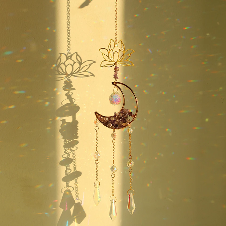 CARILLON A VENT,gold MS067--capteur de soleil prisme cristal attrapé... Il créera les plus beaux reflets lorsque la lumière du soleil ou tout autre type de lumière le frappera. Choix de cadeau: Pouvez-vous penser à un ami ou à un membre de la famille qui aime les choses brillantes ou qui a une maison joliment décorée? Si oui, alors le prisme suncatcher est le prochain cadeau que vous devriez leur offrir!, Taille : longueur 45cm Prisme Arc-en-ciel Suspendu Attrape Soleil De Voiture En Cristal Attrape Soleil De Sorcière Décoration De Fe Longueur 45cm Cadeau Déco Créateur arc-en-ciel: Cet ornement suspendu de fabricant d'arc-en-ciel est parfait pour la cuisine, le salon, les pièces de lustre, le jardin, la fenêtre, la voiture ou tout autre endroit que vous aimez. Décorations élégantes: les capteurs de soleil en cristal avec motif lotus/feuille de ginkgo/feuille d'érable/trèfle à quatre feuilles ajoutent une touche d'élégance à la décoration de votre maison ou de votre bureau avec l'étonnant capteur de soleil en cristal Matériau de qualité supérieure: le pendentif suspendu en cristal suncatcher est fabriqué avec du cristal et du métal K9 de haute qualité, super brillant et crée des reflets de lumière clairs. Attrape-Soleil en Cristal Capteur de Soleil à Suspendre - AUTREMENT - 3