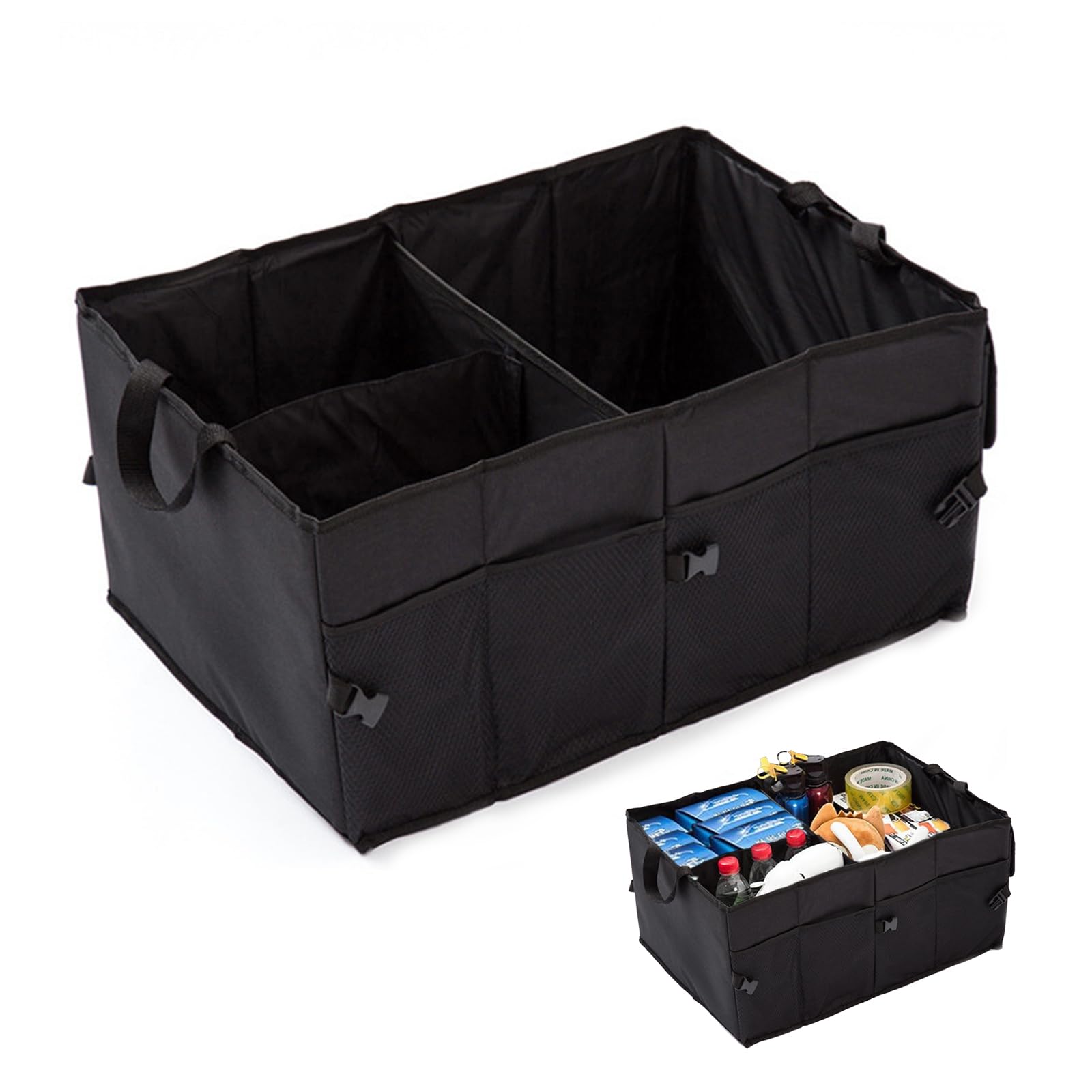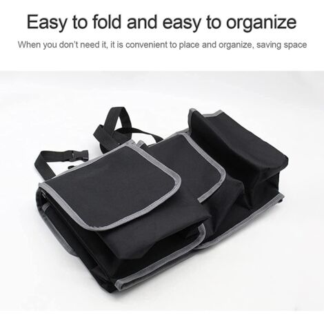 Matériau durable : Cet organiseur de voiture pour sièges arrière enfants est fabriqué dans un matériau robuste et durable, résistant aux chocs et aux frottements. 【Expérience de voyage confortable】L'organiseur de siège arrière de voiture convient à tous les objets du quotidien. 【Pliable et mousqueton】Les deux poignées renforcées vous permettent de déplacer facilement cet organiseur de siège auto dans et hors de votre véhicule. Organisateur De Coffre De Voiture Rangement Coffre De Voiture, Organisateur De Rangement En Tissu Oxford, Organisateur Coffre Sac Organisation Siège Arrière Grande capacité : Grâce à une planification intelligente de l'espace, il peut accueillir divers objets tels que des jouets, des livres ou des effets personnels. Idéal pour un usage quotidien et un rangement sécurisé. Rangement Coffre de Voiture, Organisateur de Rangement en Tissu Oxford, Organisateur Coffre... Une fois arrivé à destination, il suffit d'ouvrir la boucle et vous êtes prêt à partir. La poche en filet est idéale pour ranger les petits objets fréquemment utilisés, comme les mouchoirs et les petits jouets. GADLANE Boite Rangement Voiture Coffre - Qualité Supérieure Panier 【Conception multi-poches】Outre la grande poche intérieure, l'extérieur de l'organiseur de coffre pliable est équipé de quatre poches en filet et de deux poches à couvercles hermétiques. La conception des séparateurs permet un accès rapide aux objets nécessaires. La poche hermétique permet de ranger en toute sécurité les objets fragiles ou de valeur, comme les appareils électroniques, pour des voyages en toute sérénité. Il suffit d'ouvrir les clips, de déplier et c'est prêt à l'emploi. Une fois plié, il est équipé d'un verrou de sécurité pour éviter toute déformation.