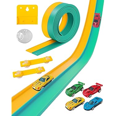 Une expérience de course passionnante et sans limites pour les enfants 🚕Liste des produits : Circuit de course 5 m*1 Ventouses rouges à deux extrémités*4 Ventouses transparentes avec tête*2 Ventouses transparentes standard*2 Voitures en alliage*4 Trépieds jaunes*4 Châssis noirs*4 Sac de rangement*1 Dispositif de départ bleu*1 Dispositif de départ rouge*1 Rampes*4 Corde*2 Mode d'emploi*1 🚨Remarques importantes : 1., Pour une expérience de jeu optimale, il est recommandé d'assembler le circuit sur une surface plane et propre., 2., Lors de la fixation sur du verre, du carrelage, des portes, des fenêtres ou des murs, veillez à ce que la surface soit propre et exempte de poussière et d'humidité afin de garantir une adhérence sûre., 3., Lors de l'installation des rails et des accessoires, veillez à ce que toutes les connexions soient bien serrées afin d'éviter qu'elles ne se desserrent pendant la course à grande vitesse. Grâce à sa large gamme d'accessoires, le piste de voiture à double voie de 5 mètres de long peut être courbé à votre guise. Les enfants peuvent même construire leurs propres circuits sur mesure, sur lesquels les voitures peuvent effectuer des sauts spectaculaires, des virages serrés et des piqués, pour des sensations fortes incomparables. Circuit Portable Sac Rangement Charmofun Mini Jouet Piste De Voiture Pour Enfants Avec Lumière Et Musique, 4 Voies Camion De Transport Avec 4 Voitures, Portable Jouet Piste De Voiture Cadeau Pour Enfants De 5+ Ans (Police Kit 6 Voitures Rampe Lanceur Que ce soit pour les fêtes d'anniversaire, la journée des enfants, Noël ou Halloween, ce circuit de course miniature garantit un enthousiasme sans limite et enrichit l'enfance de votre enfant ! Il peut être plié de manière flexible pour former différentes formes : double looping, looping simple ou circuit en U, tout est possible sans aucun problème. Grâce à trois modèles de ventouses différents, le circuit voiture peut être fixé en toute sécurité sur du verre, du carrelage, des portes, des fenêtres et même des murs légèrement irréguliers. À l'intérieur ou à l'extérieur, à la plage, au parc, dans les escaliers ou dans le salon, les enfants peuvent jouer pendant des heures. Circuit Voiture Enfant Puzzle Pistes de Voiture Jeux d'enfants Educatifs Préscolaires Piste Avertissement De Sûreté Non applicable 🚙【Circuit voiture enfant unique】Ce circuit de course flexible à deux voies de 5 mètres de long est un rêve pour les joueurs créatifs ! Le circuit automobile comprend de nombreux accessoires et est livré dans un emballage attrayant, ce qui en fait le cadeau idéal pour les enfants à partir de 3 ans. Les enfants peuvent piloter leurs voitures directement sur la piste à double voie pour des duels de vitesse passionnants, installer des rampes d'obstacles pour augmenter le défi ou utiliser la puissance de la catapulte pour propulser les voitures à toute vitesse sur les rampes, pour des sauts et des manœuvres aériennes à couper le souffle. Circuit Voiture Enfant Dinosaure Flexible Tracks Car Jouet De Piste 142Pièces Cadeau Garcon... VINGVO Circuit Voiture Enfant Piste Inclinée Cadeau Anniversaire, Jouet Flexible avec Effet... Grâce aux nombreux accessoires, les enfants peuvent commencer à s'amuser dès le déballage. Avec jusqu'à quatre véhicules simultanément, il est possible de réaliser des cascades spectaculaires telles que des sprints à grande vitesse, des dépassements passionnants, des sauts, des virages serrés, des montées et des descentes! Le circuit de voiture comprend 2 voitures à ressort en métal et 2 voitures de course détaillées. 🚕【Possibilités de jeu variées】Notre circuit voiture enfant 3 ans est également livré avec des rampes et des catapultes, offrant ainsi encore plus de possibilités de jeu variées et passionnantes. Le circuit Cars résiste aux torsions et aux fissures. Les enfants peuvent créer leur propre circuit de course personnalisé.