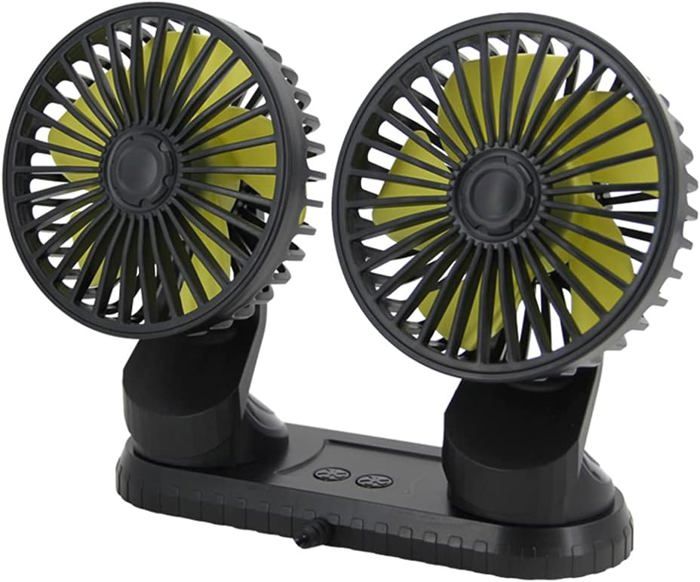 GOMETY Ventilateur de voiture, portable, rotatif à 360°, USB 12 V/24 V, universel, 3 vitesses, ventilateur de refroidissement, ventilateur de table pour la... Rotation facile, conception pliable, réglage de l'angle libre ; Réglage du vent à trois vitesses; Mini Ventilateur Domybest Ventilateur De Voiture USB Ventilateur à Double Tête 12V 24V Rotatif à 360 Degrés Ventilateur Voiture USB Grilles fermées, alimentation en air uniforme, protection de sécurité ; 5 pales ABS, vent fort et stable; Ventilateur de voiture réglable : ce ventilateur de voiture 12 V est livré avec des têtes de ventilateur rotatives de 12 cm, la tête peut pivoter à 360 ° à gauche et à droite et à 180 ° vers le haut et vers le bas dans n'importe quelle direction Spécification: Matériel: ABS Couleur : Noir Tension : 5V/1A Puissance de travail: maximum 5W Vitesse du vent : 1-2-3 Port d'alimentation : USB Longueur du câble USB : 1,37 mètre Emplacement d'installation: appuie-tête du siège avant Taille: 113*105*105mm Application: voiture/SUV Noter: Il peut y avoir de légers écarts de taille en raison de la mesure manuelle, de différentes méthodes et outils de mesure. Ventilateur universel de reoidissement de voitur... - Grandado