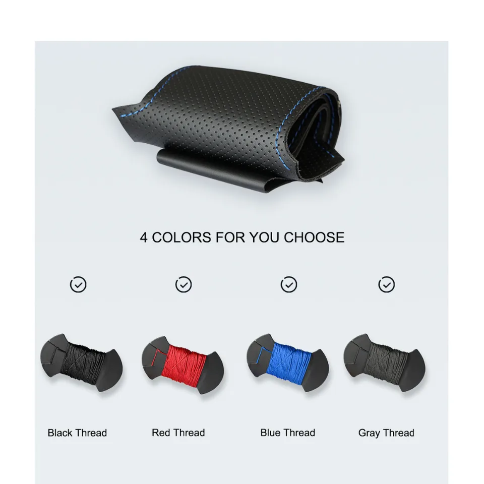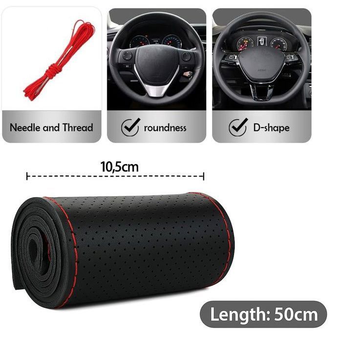 Fil à coudre - Noir (100m) | Joli Lab Compatibilité Universelle et Facile à Installer: Conçue pour s'adapter à presque tous les volants de voiture et de camion avec un diamètre de 37 à 38 cm, offrant une solution personnalisable pour améliorer l'esthétique et la prise en main de votre volant Accessoire Auto Personnalisation Housse De Volant De Voiture À Coudre Soi-Même En Cuir Kit Couture Volant Vous n'aimez pas l'apparence de votre volant de voiture ou vous voulez apporter une protection supplémentaire contre les chocs ou autres dommages ? Alors vous ne pourrez pas passer cette housse de volant en cuir à coudre, qui donnera un bel effet à votre volant. Housse de volant en cuir perforé à coudre Housse De Volant Personnalisée En Cuir Synthétique En Microfibre En... L'installation est très simple, mais nous vous recommandons de prendre une pause au quotidien pour le montage afin de faire tout le mieux si vous n'êtes pas sûr ! Largeur cuir 9,5-10,5 cm pour diamètre de volant 33-36 cm. Contenu de la livraison : 1 couvre-volant en simili cuir – noir – perforé (diamètre : 33 – 35 cm circonférence couronne 9,5 – 10,5 cm) 1 aiguille 1 fil noir en nylon résistant. Couleur du fil inclus: Noir
