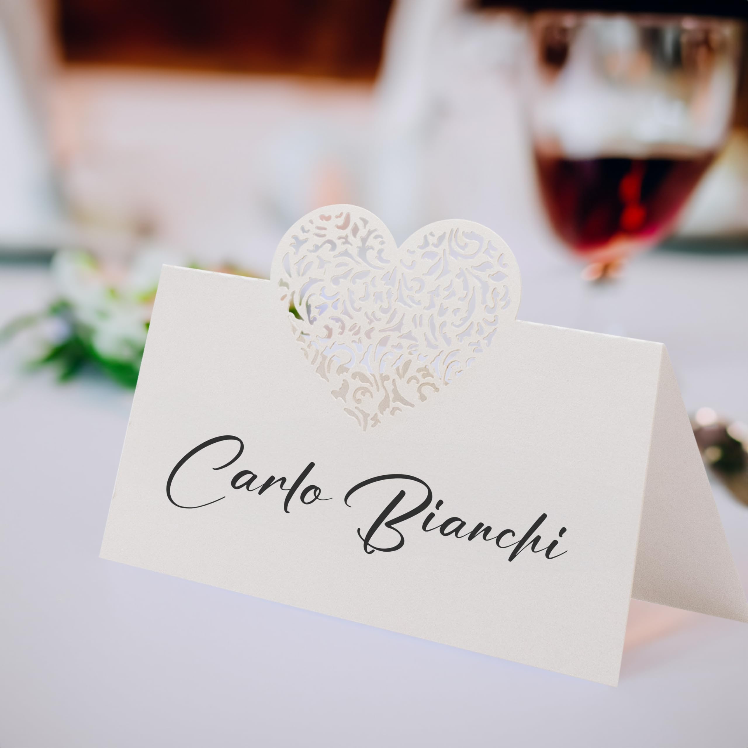 En cas d'utilisation par des enfants, nous vous recommandons la surveillance d'un adulte. Si l'élégance est ce que vous cherchez pour vos événements spéciaux, les marque-places blancs avec cœur Decoraparty sont ce qu'il vous faut. Un élégant cœur blanc pour vos événements spéciaux. - Dimensions plié : 9 x 6,5 cm. Fabriqué avec une jolie carte blanche perle, ce marque-place élégant ajoute une touche de raffinement et de glamour à chaque événement, idéal pour les mariages, les dîners de gala et autres occasions spéciales. Décoration murale - Fleur de vie - Bois sculpté - Blanc cérusé - Diamètre 40cm - Maison [CREA, DECORA, INCANTA] Les marque-places sont prêts à l'emploi, il suffit de les plier le long de la ligne pointillée, éventuellement les décorer à volonté, et de les placer sur les tables pour ajouter immédiatement une touche d'élégance et de raffinement à votre occasion spéciale. - Dimensions non pliées : 9 x 10 cm. La cérémonie est sur le point de commencer, chaque table est prête à accueillir les invités, qui, avant de s'asseoir, admirent les détails raffinés des marque-places en papier blanc perle avec cœur sculpté Decoraparty, dans l'air on ressent une atmosphère palpable de joie et d'enchant, prélude d'une soirée qui promet d'être inoubliable et pleine de magie. Marque-place Papier Sculpté Decoraparty Lot De 10 Marque-places En Forme De Diamant Transparents, Décorations De Marque, Pour Mariage, Baptême, 4 Cm Marque-place Papier Perlé Marque places avec ruban, fleurs séchées et callgraphe fat man Marage chc élégant - Etsy... Le soin apporté aux détails garantit que chaque marque-place est parfait, ajoutant un élément glamour et sophistiqué à votre cérémonie. Manipulez le marque-place avec soin. Les couleurs peuvent différer légèrement des photos en raison des différentes conditions de lumière. [Qualité pour vos événements spéciaux] Nos marque-places en papier blanc perle et cœur sculpté sont parfaits pour décorer et enchanter, ajoutent une touche d'élégance à des événements élégants tels que les mariages, les anniversaires et les dîners de gala. Vse en cristl sculpté signé Vl Sint Lmbert vec cœur en méthyste, Belgique - En vente sur [Détails soignés dans les moindres détails] Chaque marque-place est réalisé avec soin en papier blanc perle avec un cœur sculpté pour une touche d'élégance unique. Mode d'emploi : - Pliez le marque-place en suivant la ligne pointillée. Caractéristiques : - Matériau : papier blanc perlé. Le cœur sculpté au laser sur la partie supérieure donne un détail élégant qui attire l'attention et complète parfaitement l'esthétique de la décoration de table.