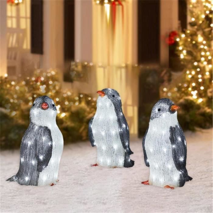Grâce à ses piquets et attaches de fixation, cette déco Noel reste stable même à l’extérieur. *Lumières Festives à 160 LED Blanc Chaud* Cette deco Noel dispose de 160 LED émettant une lumière blanc chaud, idéale pour une décoration de Noël élégante et moderne. *Structure Durable en Métal et Tissu Résistant* Notre deco de Noel allie un cadre métallique solide et un revêtement en tissu pour une décoration Noël à la fois stable et résistante. La structure de cette décoration Noel combine un cadre métallique durable et un tissu résistant. Ensemble de 3 pingouins lumineux Collection privée Pourquoi Nous Choisir ? Design charmant avec 3 pingouins pour une ambiance festive et joyeuse Éclairage à 160 LED blanc chaud pour une luminosité élégante et moderne Structure en métal robuste pour la stabilité et durabilité Tissu résistant pour une longue durée de vie Piquets de terre et attaches inclus pour une utilisation en extérieur Montage et démontage faciles pour un rangement pratique après les fêtes Utilisation polyvalente pour décorer intérieur et extérieur sans effort Infos Détaillées : Couleur : Multicolore Matériau : Métal, tissu Dimensions du père pingouin : 100 x 23 x 120 cm (L x l x H) Dimensions du mère pingouin : 70 x 23 x 112 cm (L x l x H) Dimensions du bébé pingouin : 56 x 23 x 71 cm (L x l x H) Longueur du cordon d’alimentation : 5 m Nombre des lumières : 160 Poids net : 3,5 kg Contenu du Colis : 1 x Decoration Noel de famille de 3 pingouins 12 x Piquet de terre 20 x Attache 1 x Adaptateur 1 x Manuel d’instructions Équipée de 160 LED blanc chaud, cette deco Noel diffuse une lumière élégante et une ambiance magique. Décoration de Noël renne et traîneau 160 LED blanc chaud rotin... Et après les vacances, la décoration Noël peut être facilement démontée et rangée, prête pour le prochain Noël. Description : Cette decoration Noel met en scène la famille de 3 pingouins adorables, créant une scène pleine de vie. Ces lumières créent une ambiance magique et chaleureuse, ajoutant une brillance festive à votre maison pendant les fêtes. Ornement Jardin Salon Fêtes Lumineux SOARA Decoration Noel, 3 Pingouins Gonflables, Lumières LED Blanc Famille Pingouins Lumière Noël Bonhomme de neige gonflable avec 3 pingouins, éclairage LED, polyester... Son installation est simple et sécurisée, pour une déco Noel durable.