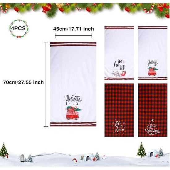 Decoration Noel Torchon Cuisine Lot Décoration de Noël Essuie Main 40×60 Deco Interieur Maison Table Décorations Christmas Decorations Serviettes et Torchons à Vaisselle Kitchen Towels Intérieur Déco Les Torchon Vaisselle de Noël peuvent conserver leur couleur d'origine et ne se décolorent pas facilement., Réutilisables Torchon De Cuisine Woplagyreat Decoration Noel Deco Décoration Torchon Table Cuisine Noël Deco Interieur Christmas Torchon Cuisine Vaisselle Essuie Main Déco Chiffon Lavette Accesoire Serviette Torchon Pour Vaisselle Ikea Matériel: Les Torchons de Noël sont fabriqués à partir de 100% de coton,doux, confortables et durables. Dessins de Noël ronds avec souhaits et... Dimensions : le produit mesure 60 cm de long et 40 cm de large. Description : Ce torchon de cuisine a une texture... Torchons de Noël absorbants d'eau pour la cuisine, torchons lavables en machine, torchon mignon pour ustensiles, tasses à thé ; 1,00€ coupon pour livraison... Mode Parfait pour toutes vos tâches quotidiennes dans la cuisine pour sécher et nettoyer Torchon Vaisselle de Noël: 4 Christmas Torchon de styles différents, mesurant chacun 60 x 40 cm. Cadeaux de Noël: Parfait pour la décoration, le service de table et les cadeaux. Contenu du paquet: 4 x Torchons de Noël., Remarque: 1., Veuillez permettre une légère différence de dimensions en raison de différentes mesures manuelles., 2., En raison de la différence de réglage de la lumière et de l'écran, la couleur de l'élément peut être légèrement différente de celle des images. Hautement absorbant: Torchons de cuisine motif bonhomme de neige, assez absorbant pour sécher, nettoyer, frotter ou pour toute autre tâche domestique. Caractéristiques: 1., Ils sont dotés d'une technologie d'impression numérique,les couleurs sont vives et résistantes à la décoloration., 2., Chaleureux conseils: En raison des caractéristiques du tissu en coton,le produit rétrécira inévitablement d'environ 2% après le premier lavage., 3., Décoration Torchon Cuisine Noël est la combinaison parfaite de décor saisonnier et de nettoyage quotidien.