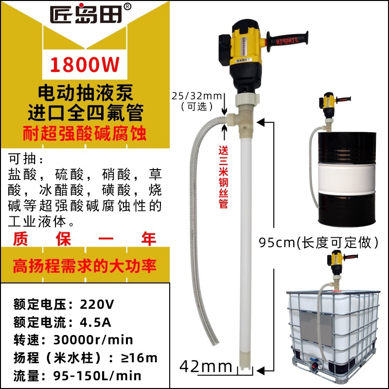 Pompe Chimique 8000 Tr/min Pompe à Tambour électrique Def Fluid - Pompe De Transfert D'huile Multifonctionnelle 8000 Tr/min 60-80 LPM, Excellente Pompe à Eau électrique D'étanchéité Pour Baril Standard Pompe Chimique 220V Embrayage à tambour de tambour joint de pompe à huile pour chinois 4500... Système de pompe centrifuge à tambour Graco 115 V avec pompe inférieure [Scellant fiable] Excellentes performances d'étanchéité assure un transfert d'huile sécurisé, offrant une tranquillité d'esprit. Tronçonneuse,HUNDURE. Pompe à huile pour tambour d'embrayage 325 pouces... [Application large] Largement utilisée dans divers secteurs tels que les industries chimiques, pétrochimiques, pharmaceutiques et alimentaires. SPEC: Type d'article: pompe à tambour électrique Matériel: Abs Hauteur de travail: ≥3 mètres Courant nominal: 4A Vitesse: 8000 tr / min Débit: 60-80 lpm Application large: cette pompe à baril convient au pompage du , du kérosène, du lait, de l'alcool, de l'eau et d'autres milieux moins visqueux et non corrosifs. liste de colisage: 1 x pompe à tambour électrique 1 x tube de pompe 2 accessoires de connecteur x 1., Pompe à tambour polyvalente: cette pompe à tambour électrique convient au tambour standard de 200L 220L, idéal pour pomper le , le kérosène, le lait, l'alcool, l'eau et d'autres milieux moins visqueux et non corrosifs., 2., 3., Excellent scellement: cette pompe à tambour à est conçue avec d'excellentes performances d'étanchéité, un transfert d'huile fiable, offrant une tranquillité d'esprit., 4., Facile à utiliser: un démarrage d'un bouton, cette pompe à électrique permet un pompage sans effort avec une hauteur de travail d'au moins 3 mètres, réduisant la fatigue des mains pendant le fonctionnement., 5., Application large: Largement utilisée dans les secteurs chimiques, pétrochimiques, fines, colorants, produits chimiques, protection écologique, traitement de l'eau, pharmaceutique, secteurs alimentaires, etc.
