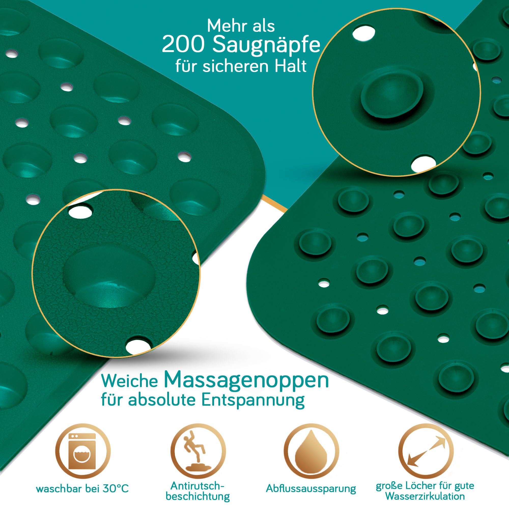 Le design moderne de haute qualité donne à n'importe quelle salle de douche un look contemporain. Les grands trous permettent à l'eau de circuler et de s'écouler de manière optimale, peu importe où se trouve le drain. Avec son design intemporel, le tapis de bain antidérapant s'adapte à toutes les baignoires et est absolument polyvalent. Grâce au revêtement antidérapant spécial et aux innombrables ventouses sur la face inférieure, le tapis de bain antidérapant vous offre un maintien sûr à tout moment. Picots Massage Effet Relaxant Delluxia Tapis De Bain Antidérapant Pour Enfants Et Adultes I Tapis De Tapis PVC Doux Ventouses Enfants Notre tapis de bain antidérapant Delluxia est antibactérien et résistant à la moisissure. Les picots de massage doux sur le tapis de bain ont un effet revitalisant après une journée bien remplie. Il remplit toute la baignoire. Pas de crochets en plastique cassants. Tapis de bain antidérapant, rectangulaire 60 x 40 cm, en Le tapis de douche antidérapant est inodore et 100 % sans BPA, latex et tous les plastifiants. Bonjour moments de plaisir. Un cadeau qui offre une détente – Le tapis de baignoire antidérapant est parfait pour un petit cadeau pour les femmes ou un petit cadeau pour les hommes, mais aussi pour les petits cadeaux de Noël, cadeaux de Saint-Nicolas, pour le calendrier de l'Avent 2024 ou comme cadeau d'anniversaire pour les hommes ou les femmes Transformez chaque baignoire en une oasis de bien-être et surprenez vos proches. Taille parfaite : Grâce à une taille de 100 x 40 cm, notre tapis de baignoire extra long antidérapant est universel et adapté à toutes les baignoires, qu'elles soient rondes ou courbées. Sécurité et confort dans votre douche ! Ce tapis Delluxia de 53x53cm adhère parfaitement au fond de la douche ou baignoire pour éviter les glissades Le tapis pour enfant souple XXL offre une protection totale antidérapante. - Notre tapis est fabriqué en PVC de qualité supérieure. La plupart des tapis de bain... Nous ne faisons aucun compromis sur le thème de la santé. - 2 crochets adhésifs assurent une suspension ordonnée du tapis de douche élégant sur la paroi de la douche. Le tapis de bain pour enfants offre une protection antidérapante absolue. Ainsi, le tapis antidérapant de douche peut sécher de manière optimale et invisible. Le long tapis de bain antidérapant permet à plus d'un enfant de se baigner en même temps sans glisser. Notre tapis de douche est fabriqué en PVC doux et sensible à la peau, sans phtalates ni plastifiants.