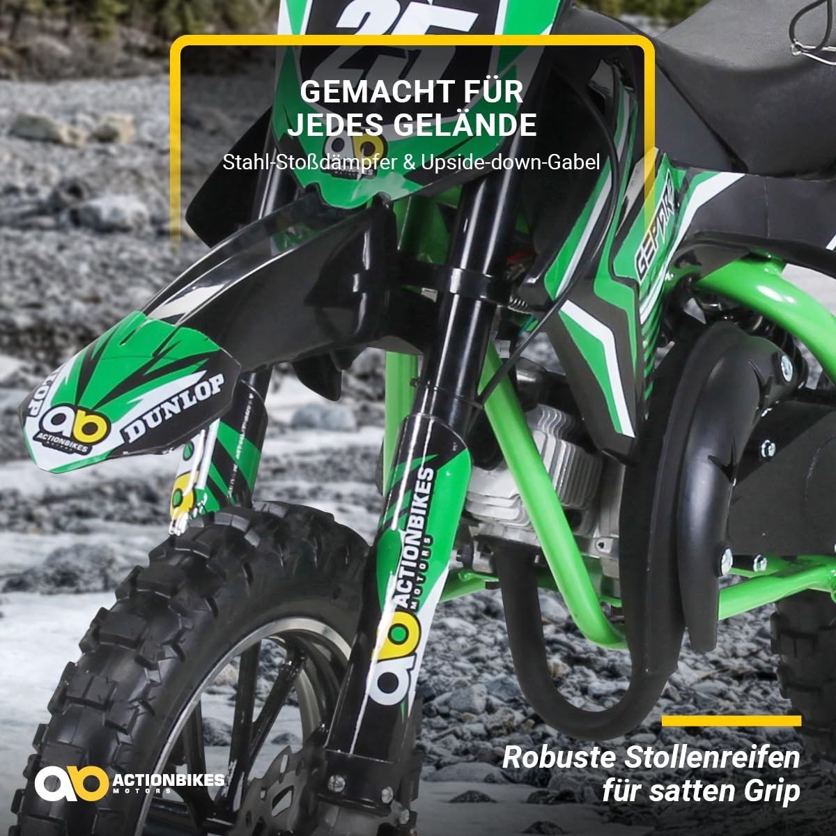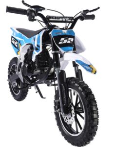En outre, les casques de motocross pour enfants et les vêtements de protection sont absolument obligatoires. Dirt Bike Enfant Pneus à Air Actionbikes Motors Mini Delta 49 Cc Moto-cross Pour Enfants Freins à Moto Enfant 49cc Gepard - Puissant moteur 49 cc – Embrayage – 3,5ps Ainsi, le mini vélo de cross pour enfant a des pneus à crampons de tailles réglables pour un meilleur maintien sur les pistes. Grâce au moteur à deux temps agile de 49 cm³ monocylindre et au carburateur sport de 15 mm, la moto pour enfant High End Cross accélère en un tour de main jusqu'à 35 km/h. - En aluminium Pull Start – abreiß laisse de sécurité – Fourche Upside Down Mini Cross ORION 49 / Mini Moto Enfant 50cc / Rouge L'allumage électronique assure un démarrage rapide de la mini cross bike, tandis que le filtre à air sport et l'échappement sport assurent une performance maximale stable de cette moto pour enfant. Mini moto cross « Gepard ». Il y a ainsi une corde à tirer sur la moto pour enfant, qui est fixée au bras. De plus, la fourche Upside Down à l'avant et l'amortisseur réglable sur l'essieu arrière créent une suspension souple après les sauts et les drops. - Cadre renforcé – Gel parfaites freins à disque – 10 pneus Grâce au moteur agile monocylindre 2 temps de 49 cm³, la moto pour enfant High End Cross accélère en un tour de main jusqu'à 50 km/h. Haute performance dans la... L'allumage électronique assure un démarrage rapide de la mini cross bike, tandis que le filtre à air sport et l'échappement sport assurent une performance maximale stable de cette moto pour enfant. Avec le vélo de cross Delta pour enfants, vous achetez à... La moto pour enfant High End Cross garantit une accélération rapide jusqu'à 35 km/h. Une adhérence parfaite sur les pneus à crampons et les freins à disque perforés assurent un temps de réponse ultra court et garantissent que votre enfant maîtrise le mieux et devient un artiste sur deux roues. Grande taille Pour des performances optimales dans le trial, la moto pour enfant Gepard dispose d'une combinaison sophistiquée de composants individuels. En tant que poids léger de 24 kg, la mini moto cross de Miweba est facile à manier même pour les jeunes jeunes enfants jusqu'à 65 kg.