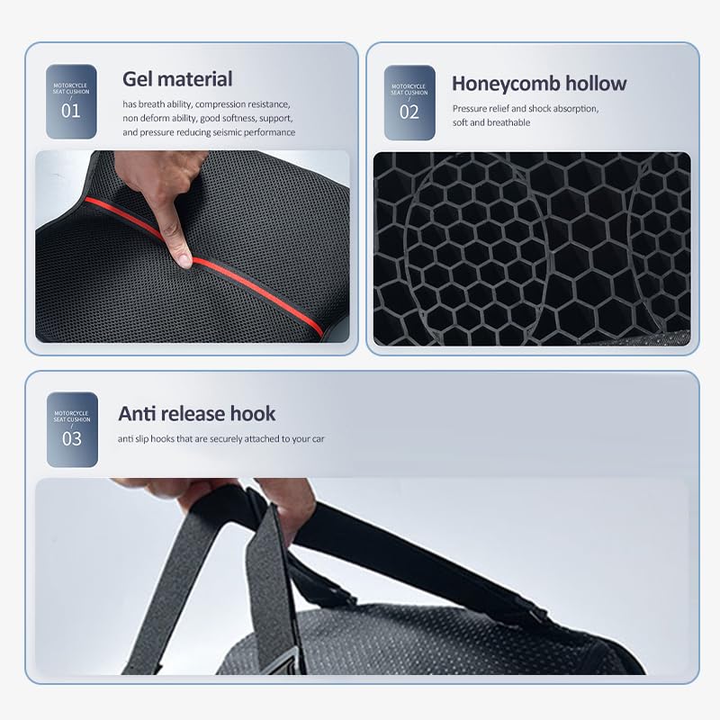 La couche d'absorption des chocs EVA est d'environ 2,5 mm, la... Les points antidérapants et les doubles sangles garantissent une fixation sûre et stable. Résistant à la poussière et à l'eau, toujours comme neuf : la surface en cuir est résistante à la poussière et à l'eau, protégeant l'intérieur du coussin des dommages et de la décoloration, ce qui prolonge sa durée de vie. Amortisseur Chocs Selle Moto La Couche D'absorption Des Chocs EVA Est D'environ 2,5 Mm, La Gel Selle Moto Protection multicouche, durable et sûre : noyau en gel hautement élastique combiné à une housse en cuir isolant de haute qualité, offre confort et résistance. Ashata Tapis d'absorption des chocs de moto Aramox Coussin de Siège en... Le support latéral pour les hanches et le soutien du coccyx soulagent la pression et protègent contre l'inconfort ou la douleur causés par les longs trajets. Domybest Coussin Gel Moto Tapis d'absorption de Choc pour Siège de Moto Coussin d'amortisseur Coussin de Gel de Siège de Moto Moelleux Confortable Bleu