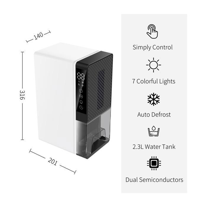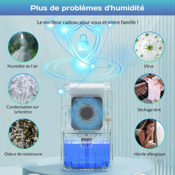 Déshumidificateur Silencieux Minuterie 24h Anti-moisissure Deshuidificateur D Air, Déshuidificateur à Arrêt Autoatique Avec Deshumidificateur Minuterie 24h Déshumidificateur électrique portable pour la maison, la chambre à Deshuidificateur d Air, Déshuidificateur à arrêt autoatique avec... 【Déshumidificateur Domestique Efficace】 Déshumidificateurs électrique utilise une technologie avancée de condensation par semi-conducteurs pour une déshumidification efficace, maintenant l'humidité intérieure à un niveau confortable de 45 %. Deshumidificateur d air anti moisissureÉquipé d'un grand réservoir d'eau de 2800 ml, il assure une déshumidification fiable. 【Fonctionnement Silencieux & Arrêt Automatique】Deshumidificateur d air silencieux, avec un niveau sonore maximal inférieur à 30 dB. Description du produit Déshumidificateur Multifonctionnel et efficace Un capteur intégré déclenche automatiquement le dégivrage en dessous de 25°C, évitant ainsi les dommages et garantissant des performances durables. 【Éclairage Ambiant du Réservoir à Sept Couleurs & Commande Tactile】Déshumidificateur pour la maisonest doté d'un écran tactile facile à utiliser qui vous permet de régler les paramètres d'un simple geste pour créer l'espace idéal. 【Déshumidificateur Portable Multifonctionnel】 Deshumidificateur d air anti moisissure portable se déplace facilement d'une pièce à l'autre, d'un placard à une chambre, une salle de bain, un camping-car ou un bureau. Déshumidificateurs Pour la Maison Déshumidificateur Pour la Chambre...