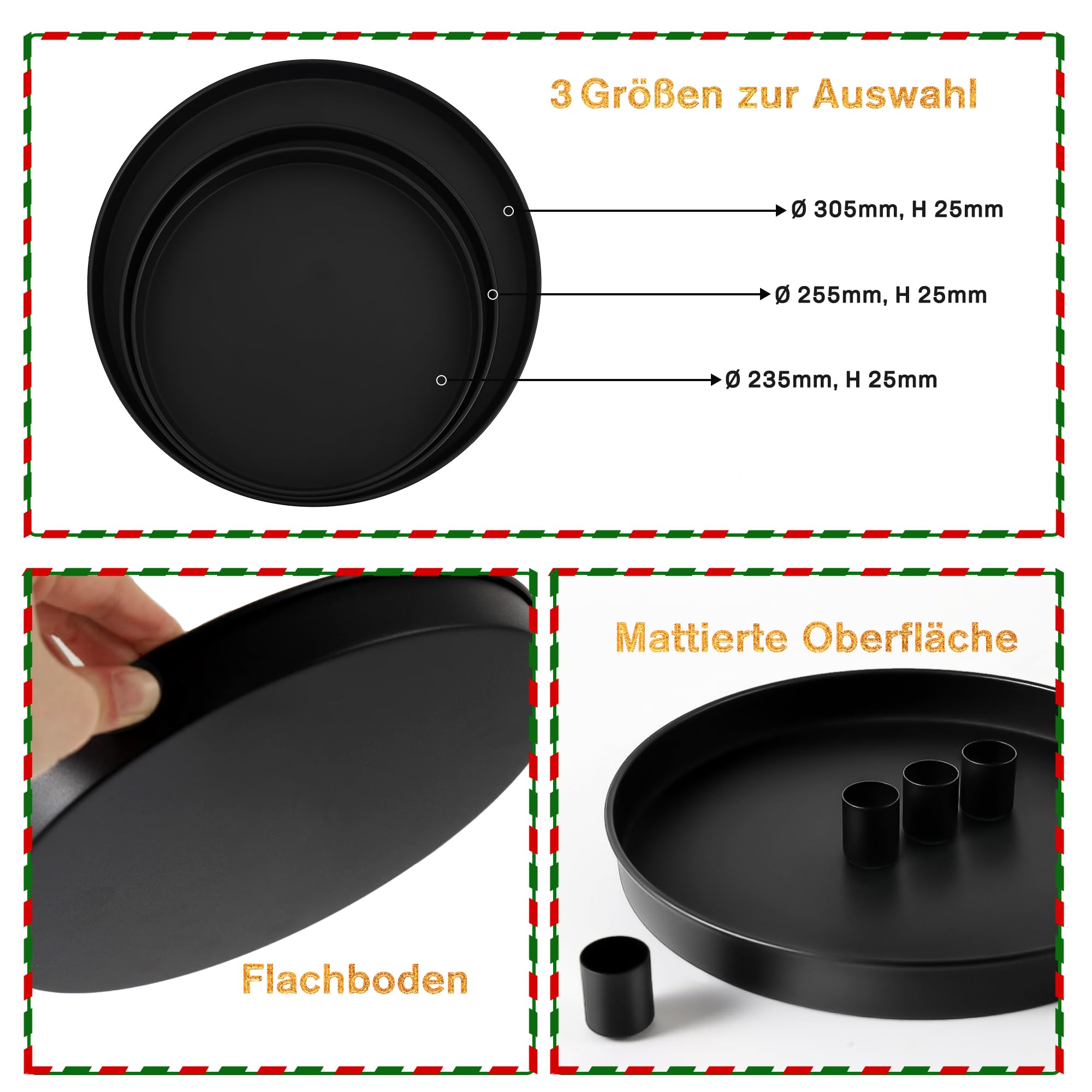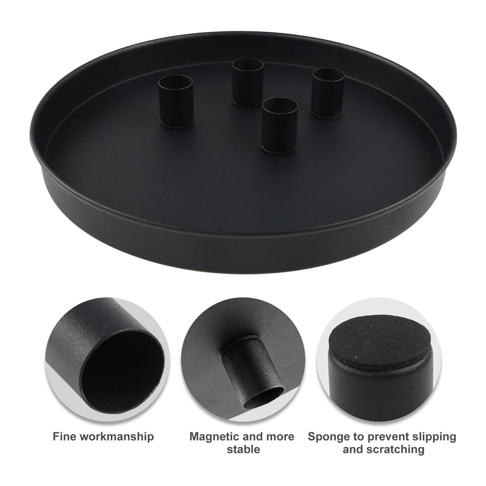 Decoration Table Moderne Avent Noel Plateau Décoratif Rond, Design Moderne Plateau Décoratif Marron Plateau Rond Noir 23cm Bougeoirs Magnetiques bruno evrard Bougeoir design noir en forme d'étoile Livraison gratuite Maison et Réglage amélioré de la table : les bougeoirs en métal sont parfaits pour les accessoires de table à manger, le plateau à bougies magnétique élève l'atmosphère, créant une ambiance chaleureuse et accueillante, permettant aux hôtes de créer sans effort l'ambiance pour des rassemblements mémorables et des occasions spéciales Pour protéger vos meubles, 10 patins autocollants sont inclus. Support magnétique flexible : les 4 bougeoirs magnétiques stables peuvent être placés individuellement sur le plateau. Chaque support offre une capacité de charge magnétique allant jusqu'à 500 g et assure ainsi un maintien sûr de vos bougies. Les différents supports mesurent environ 2,5 cm x 2,0 cm (hauteur x diamètre) et sont idéales pour les bougies à tige d'un diamètre d'environ 2 cm. Décoration polyvalente : que ce soit comme couronne de l'Avent, assiette de Pâques ou décoration de table simple de style scandinave, ce plateau à bougies s'adapte à toutes les saisons. Il se combine parfaitement avec des fleurs séchées, des branches ou une décoration saisonnière et crée une atmosphère chaleureuse et confortable. Convient également pour un usage quotidien : en plus de sa fonction de plateau à bougies, il est idéal comme plateau de rangement décoratif pour les petits objets. Ce plateau à bougies ne convient pas seulement aux couronnes de l'Avent. Utilisez-le également de manière créative comme assiette décorative pour décorer une belle table avec des bougies chauffe-plat ou des fleurs fraîches