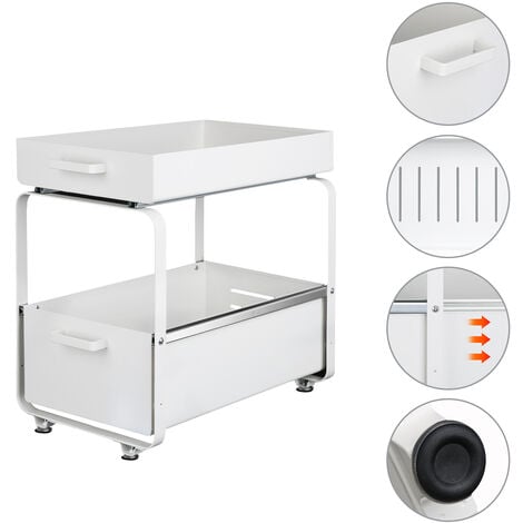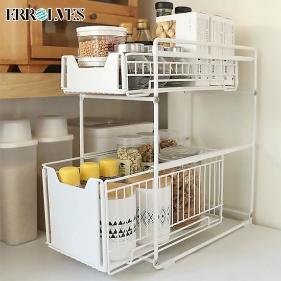 Rangements Sous Évier 2 Niveaux Étagère Rangement Cuisine Organisateur Tiroir Coulissant À 【Grande Capacité】Taille: 39CM x 21CM x 37., 5CM,L'organisateur de salle de bain adopte un design double couche qui maximise l'utilisation de l'espace vertical. Tiroir Coulissant Cuisine Rangeent Sous évier Au Design Unique Noir≈ OR- Tiroir Coulissant- Solution De Rangeent Organisateur Tiroir Coulissant Permet un accès facile aux articles lorsque vous accédez aux armoires sous l'évier. L'organisateur à 2 niveaux comprend un panier fixe et coulissant. Permet un accès facile aux articles lorsque vous accédez aux armoires sous l'évier NETEL Rangement Sous Évier Pour Epices, Étagère à 2 Niveaux, Organisateur De Tiroir Coulissant Pour Cuisine/Salle De Bain, Hauteur Réglable, Blanc. 4.7/5... 【Étagère sous armoire multifonctionnelle】Contrairement à d'autres produits, l'organiseur KOOSREEL et l'espace de rangement sous l'évier est juste assez grand. Comprend également 4 crochets amovibles et 2 paniers suspendus pour ranger les serviettes, les brosses et autres petits objets. Facile à installer sans aucun outil. L'organisateur à 2 niveaux comprend un panier fixe et coulissant. 【Matériau de qualité supérieure】 Les organisateurs de salle de bain sont fabriqués à partir de matériaux plastiques ABS de haute qualité, 4 tubes de support adoptent une peinture par pulvérisation et un corps en fer forgé épaississant, une bonne prévention de la rouille et une capacité portante élevée, durable et stable. Rangement sous Évier Cuisine