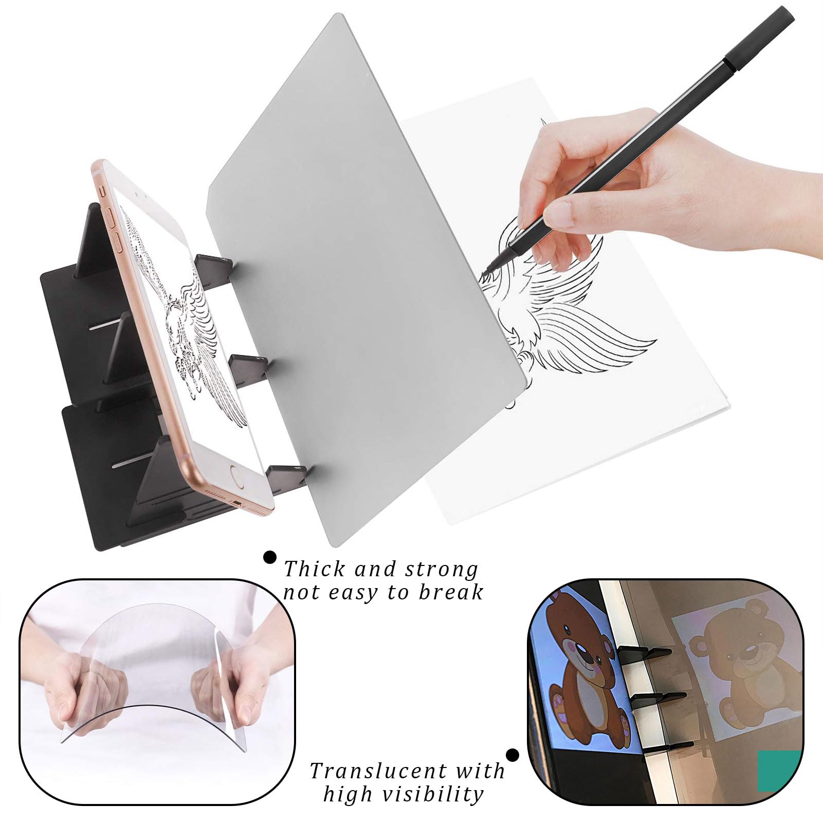 YSJCHEBS 1 Ensemble De Planche À Dessin Réfléchissante Optique Portable, Planche À Dessin Optique, Projecteur De Dessin, Projecteur De Dessin pour Enfants, Planche À Dessin De Copie De Projection Projecteur LED de traçage artistique – Lampe de projection réglable à 360° avec lentille HD et design portable, projecteur de dessin pour artistes, enfants et... Support Smartphone Tablette Dessin Projecteur De Dessin Pour EnfantsPlanche à Dessin Multimodèles Pour Xoomy Dessin Matériau : plastique Couleur : noir Dimensions : 20 x 13,5 cm Le paquet comprend : 1 jeu de planche à dessin optique 【Principe d'application】 La planche à dessin optique utilise le principe de l'image optique. Veuillez noter que l'effet de projection à l'avant et à l'arrière du plateau à dessin est différent. Laissez libre cours à votre créativité avec notre planche à dessin optique transparente portable... L'image n'est pas projetée sur le papier, mais l'image affichée sur le papier à dessin peut être vue à travers l'art. Matériau de qualité supérieure : la planche à dessin est fabriquée en résine durable, épaisse et robuste, pas facile à casser, bien visible, réduit efficacement les ombres, excellente qualité, sûre et fiable. Principe d'application : la planche à dessin optique utilise le principe de l'image optique. ce qui contribue au développement de la coordination œil-main et des compétences de base en peinture.