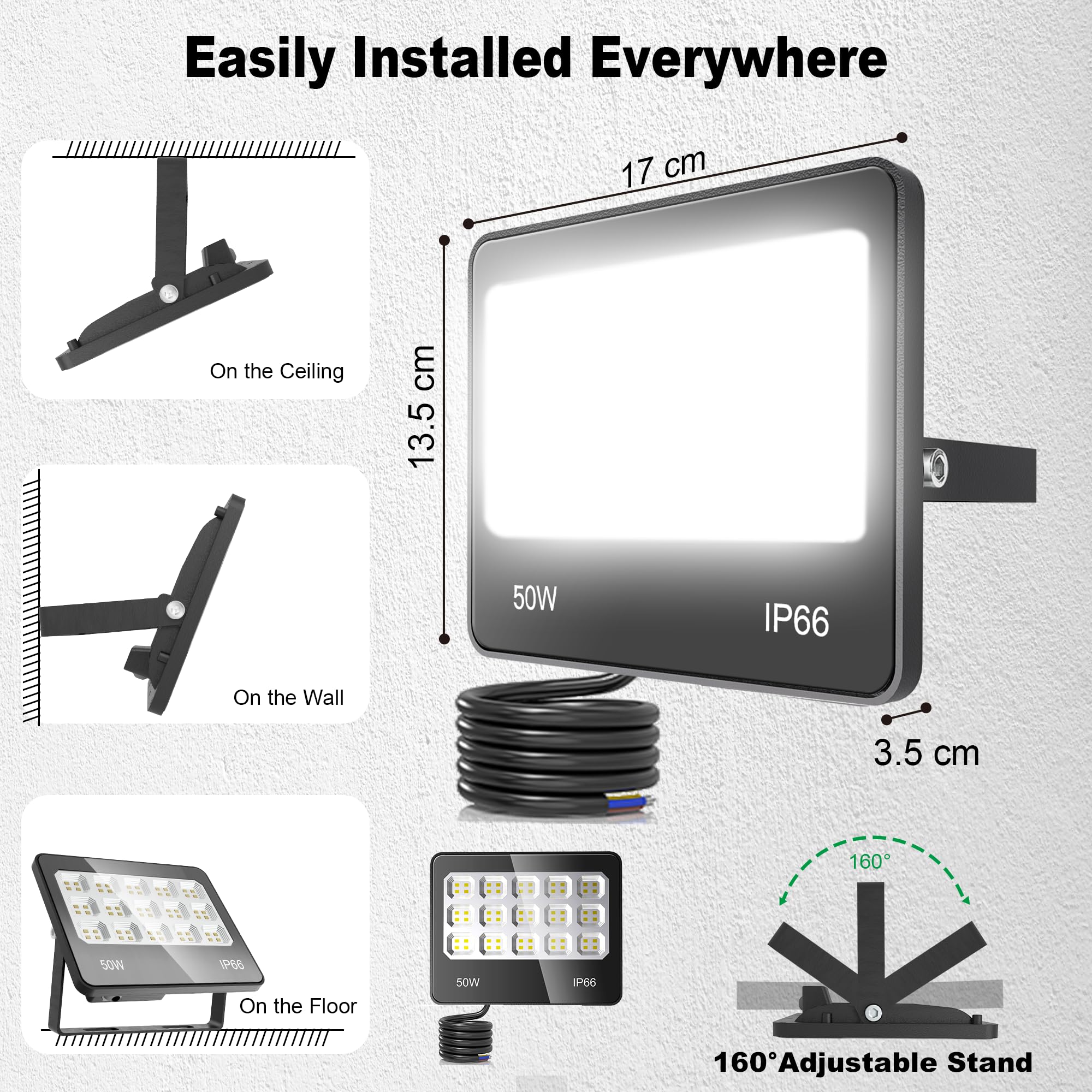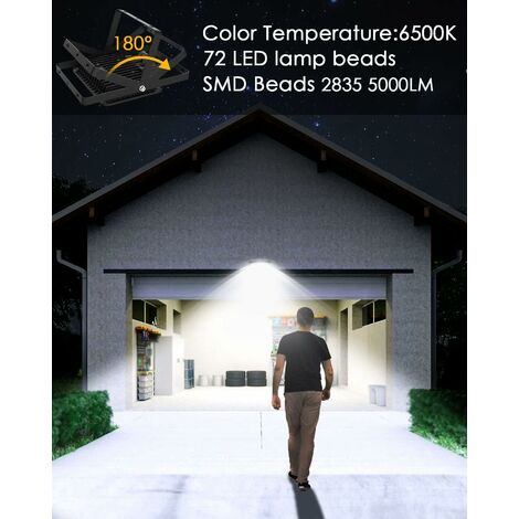 1 Entrée 2 Extérieur 3 Cour 4 Entrepôt 5 Garage Ce projecteur led extérieur avec détecteur convient à l'éclairage extérieur des jardins, des cours, des débarras, des garages, des terrasses, des jardins, des couloirs, des portails, des entrées d'entrepôts, etc. Chaque panneau lumineux est fabriqué en alliage d'aluminium avec des rainures étagées, permettant à la lumière de couvrir uniformément la zone ciblée, augmentant la zone d'éclairage de 30%, éclairant votre espace avec une consommation d'énergie réduite et vous permettant d'économiser 85% sur votre facture d'électricité. éclairage Extérieur Sécurité 50W Projecteur Led Exterieur Detecteur De Mouvement, 72 Leds Blanc Spot LED 50W 5000 Lumens Mode jour & Mode nuit Éclairage extérieur super lumineux: projecteur led extérieur avec détecteur avec 60 perles LED super lumineuses intégrées, projecteur LED 50W produit une luminosité de 5000 lumens. Projecteur Led Exterieur Detecteur De Mouvement 50W, 5000Lm 7000K Spot... L'angle d'éclairage peut être ajusté selon vos besoins. Le panneau en verre trempé offre une bonne transmission lumineuse et résiste aux chocs, aux chutes et aux rayures. Projecteurs Led Extérieur 50W 5000Lm Avec Detecteur De Mouvement Spot Lorsqu'une personne ou un véhicule pénètre dans la zone de détection, lumière s'allume et s'éteint automatiquement. Un réglage automatique est nécessaire avant utilisation. Pendant Longtemps: Avec une durée de vie allant jusqu'à 30 000 heures, spot led extérieur detecteur de mouvement ledest durable et réduit les coûts de remplacement des lampes. Projecteur Led Extérieur avec Détecteur Installation Facile : ce spot LED d'extérieur est doté d'un support métallique réglable, ce qui facilite son installation au plafond, au mur ou au sol.