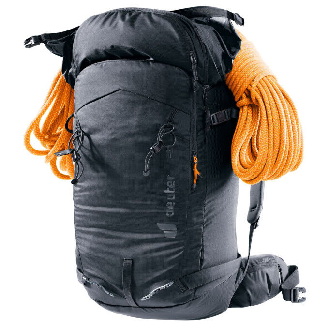 FONCTIONNALITÉ COMPLÈTE : Avec ce sac à dos d'hiver, tu as toujours ton équipement à portée de main. EXTENSION DU VOLUME : Idéal pour les randonnées de plusieurs jours : le Roll-Top permet d'adapter individuellement le volume du sac à dos aux bagages nécessaires. Compartiment Avalanche Deuter Freerider Pro 32+10: Technischer Rucksack Für Anspruchsvolle Skifahrer Extension Volume Roll-top Sac à dos de randonnée ski - snowboard Freerider Pro 32 SL Deuter ; Dimensions · 56 x 35 x 18cm ; Taille corporelle · 158 – 178 cm ; Couleur: BLEU ; Couleur: GRIS... Il peut être agrandi de 10 litres ou compressé. Le système dorsal LiteSnow offre un grand confort pour un faible poids et empêche l'adhérence de la neige et l'absorption de l'humidité grâce à un design et des matériaux innovants. Grâce à la forme spéciale et aux évidements bien pensés de la mousse EVA recouverte de Spandex, la neige n'adhère plus, l'absorption d'humidité est empêchée et le confort de port est maintenu. Poids : 1100 g | Dimensions : H 58 x L 33 x P 18 cm L'extension de volume dispose de sangles escamotables pour fixer et comprimer le bagage ainsi que pour fixer la corde. Des sangles escamotables permettent de fixer en toute sécurité la corde, les skis ou le snowboard. Ton casque de ski trouve sa place dans le filet à casque amovible si tu ne l'utilises pas. La grande ouverture dorsale permet un accès rapide au compartiment principal. Pratique, on retrouve également un volume extensible de 10L grâce au rabat enroulable avec sangle escamotable pour comprimer une corde par exemple. Confortable... Même si le sac à dos est plus haut, l'espace pour la tête reste intact, ce qui offre un confort supplémentaire. Une corde peut être fixée sur le haut du sac à dos. Les piolets et les bâtons peuvent également être fixés sur le devant du sac à dos. Sac à dos ski de rando femme DEUTER RISE 32+SL