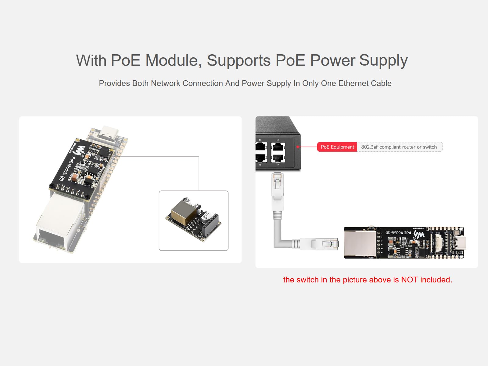 Designed for multimedia and touchscreen interfaces, the ESP32-P4-ETH supports DSI capacitive touchscreens, MIPI-CSI/DSI interfaces, and includes hardware features like ISP, H. Whether you're a developer building secure IoT systems, an engineer prototyping edge AI-devices, or an educator exploring RISC-V embedded platforms, the ESP32-P4-ETH development board offers a comprehensive toolkit with Ethernet connectivity, multimedia capability, and secure architecture all in one compact, high-efficiency package., Package include 1., ESP32-P4-ETH with pre-soldered headers × 1 📺 Supports DSI Touchscreen & Dual MIPI Interfaces: Compatible with DSI capacitive touchscreens and MIPI-CSI/DSI displays, featuring IPS panel support, 178° viewing angle, and 10-point multi-touch, perfect for interactive HMIs. It offers dual power options, allowing users to choose between Power over Ethernet (PoE) or USB Type-C, making it suitable for flexible and remote deployments. 📦 Rich IOs & Compatibility with Rasp-berry Pi Pico HATs: Equipped with a 40PIN GPIO header, USB OTG, speaker/mic header, and M. With an onboard 40PIN GPIO header, it is also compatible with some Rasp-berry Pi Pico HATs, making it easy to extend functionality using existing ecosystems. Powered by the ESP32-P4 dual-core RISC-V processor, this board delivers robust compute power for IoT, human-machine interaction (HMI), and edge AI applications. Carte IoT Dual-core RISC-V ESP32-P4-ETH Development Board With 100Mbps RJ45 Ethernet Carte ESP32-P4-ETH PoE USB-C 264 encoder, and AI-speech interaction support for connecting to platforms like DeepSeek and Doubao. Overview The ESP32-P4-ETH is a next-generation ESP32 development board with Ethernet, tailored for applications requiring high-performance processing, rich multimedia support, and secure connectivity. ✔ High-Performance ESP32-P4 Development Board with Ethernet: Built on the advanced ESP32-P4 chip, this board offers powerful dual-core RISC-V processing and a 100Mbps RJ45 Ethernet port, ideal for IoT networking and embedded projects. Espressif ESP32-P4 - A 400 MHz general-purpose dual-core RISC-V... Waveshare ESP32-P4-ETH High-Performance Development Board 🔊 Advanced Multimedia & AI-Voice Processing Support: Includes ISP, JPEG codec, H.