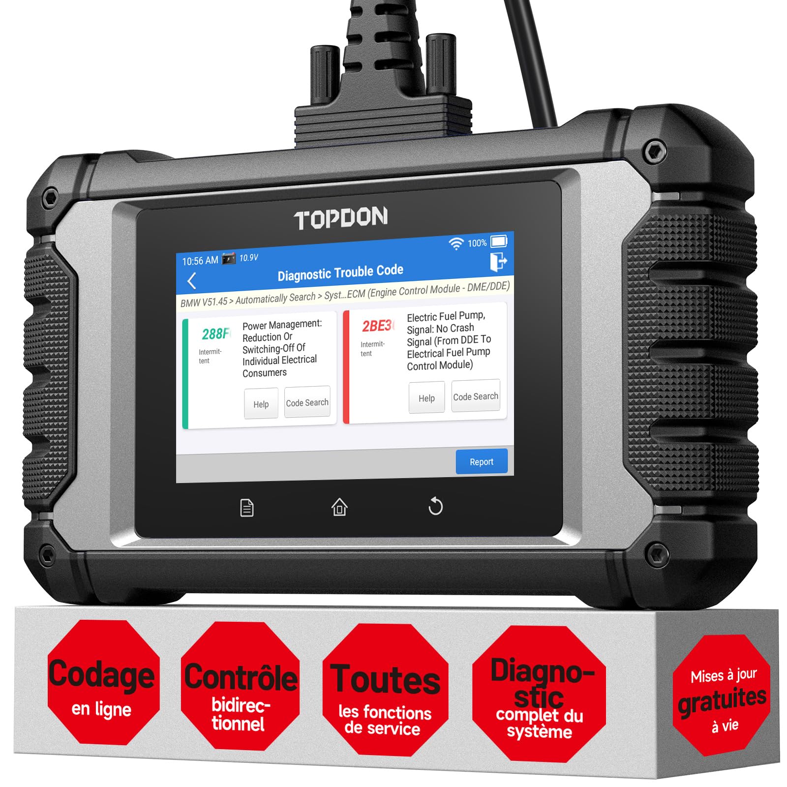 Confirmer la compatibilité avant l'achat. Rationalisez votre progression de réparation et passez plus de temps à réparer le véhicule et moins de temps à diagnostiquer. Par exemple, les utilisateurs peuvent tester l'injecteur pour vérifier s'il fonctionne correctement lorsqu'ils ne peuvent pas démarrer le moteur de la voiture, ce qui permet d'économiser beaucoup d'efforts et de tests. Autel Diagnostic Auto TOPDON Valise De Diagnostic Auto Phoenix Plus, Codage ECU, Niveau OE Tous Les Valise Diagnostic Auto Compatible avec BMW, BENZ, JAGUAR, CHRYSLER, FIAT, GM, FORD, HONDA et plus. Il localise avec précision les défauts, vérifie les réparations en temps réel et réduit les suppositions. Équipé d'un codage ECU, l'ArtiDiag Pro 1., 0 peut activer des fonctions verrouillées ou masquées et désactiver les fonctions inutiles. Pour plus de fonctions spéciales, reportez-vous au menu des fonctions spéciales dans le système spécifique. Supprime les rappels de test routier et de ceinture de sécurité pour les passagers avant sur BENZ ; MISE À JOUR EN UN CLIC AVEC WIFI Un clic met à jour le logiciel via WiFi pour obtenir les dernières fonctions. IMPRIMER DES RAPPORTS DE DIAGNOSTIC & RETOUR D'INFORMATION Générez un rapport de diagnostic et imprimez-le pour fournir des informations aux clients et aux compagnies d'assurance. Le TOPDON ArtiDiag Pro 1., 0 prend également en charge toutes les fonctionnalités OBD2 et exécute tous les modes de test OBDII sur la plupart des marques de voitures : lit les codes efface les codes lit les données en direct lit les données d'arrêt sur image lit la préparation I/M test de moniteur embarqué lit les informations du véhicule Composants/Systèmes de la carte Offre 31 services de maintenance tels que les remises à zéro de l'huile , les remises à zéro du SAS, les remises à zéro de l'EPB, les remises à zéro du BMS , la purge de l'ABS, les remises à zéro de l'antidémarreur, et plus encore. QU'Y A-T-IL DANS LA BOITE? 1., Tablette ArtiDiag Pro 2., Câble de charge 5 V CC et adaptateurs US, UK et UE 3., Câble de diagnostic 4., Manuel d'utilisation, guide de démarrage rapide 5., Housse de transport L'AutoVIN identifie automatiquement les informations du véhicule pour accélérer le diagnostic. Les commandes bidirectionnelles peuvent envoyer des ordres à l'ECU et contrôler les actionneurs pour qu'ils effectuent les actions correspondantes afin d'aider à identifier les problèmes avec précision. Enregistrement du code A/T et purge d'air pour TOYOTA, 【31+ Fonctions de Maintenance & Réinitialisation】 Développez vos capacités de service avec plus de 31 fonctions de maintenance, incluant les réinitialisations d'huile, EPB, BMS et SAS. ACCÉLÉREZ LE PROCESSUS DE DIAGNOSTIC AVEC AUTOVIN AutoVIN identifie automatiquement les informations du véhicule telles que la marque, le modèle. TOPDON ArtiDiag EU, Diagnostic multimarque Complet pour BMW/Benz/VAG, Scanner L'ArtiDiag Pro 1.0 prend en charge les 10 modes de test OBDII, incluant la lecture/effacement des codes défaut, le flux de données en direct et la consultation des infos ECU. L'AutoVIN identifie automatiquement les informations du véhicule pour accélérer le diagnostic. TOPDON Valise Diagnostic Auto ArtiDiag Pro, Codage de ECU,...TOPDON Valise Diagnostic Auto ArtiDiag Pro, Codage de ECU et... Le scanner ArtiDiag Pro 1., 0 prend également en charge des fonctions plus spéciales pour différentes marques de voitures. XTOOL D9 Diagnostic Automobile Topologie Contrôle Bidirectionnel Codage... Remplacez et recodez les modules (ex. Par exemple: Apprentissage de la variation de position du vilebrequin et réinitialisation de la compensation de carburant pour GM, Durée de vie de la batterie plus longue et fonctionnement plus fluide : CPU 4 cœurs 2Ghz, 2G RAM, Android 7., 0, 6100mAh d'autonomie. Fonctionne sur les lumières, les serrures de porte, le klaxon, les fenêtres, les essuie-glaces, l'EVAP, etc. 【Codage ECU & Personnalisation du Véhicule】 Cet outil de diagnostic TOPDON prend en charge le codage ECU et en ligne avancé pour VW, Audi, Skoda, Seat, Mercedes-Benz et autres. Compatible avec les grandes marques comme VW, GM, BMW, Porsche et Mercedes-Benz. 【Matériel Professionnel & Support】 Conçu pour l'efficacité : l'ArtiDiag Pro 1., 0 dispose d'un CPU Quad-Core 2GHz, 2GB RAM / 32GB ROM et d'une batterie 6100mAh permettant jusqu'à 14 heures d'utilisation continue. Diagnostic de tous les systèmes au niveau de l'équipement d'origine pour plonger en profondeur dans les systèmes du véhicule, y compris le moteur, la transmission, l'airbag, l'ABS, l'ESP et le TPMS pour plus de 100 marques. COUVRE LES TRAVAUX DE CODAGE LES PLUS AVANCÉS Cet outil permet aux techniciens de personnaliser facilement un véhicule. éclairage, ABS), déverrouillez des fonctions cachées et personnalisez les paramètres comme les rappels de ceinture et le verrouillage à distance. 【Diagnostic Complet des Systèmes Niveau OE】 Effectuez des diagnostics complets sur le moteur, la transmission, les airbags, l'ABS, l'ESP, le TPMS et plus pour plus de 72 marques., L'ArtiDiag Pro 1., 0 prend en charge les 10 modes de test OBDII, incluant la lecture/effacement des codes défaut, le flux de données en direct et la consultation des infos ECU. 【Contrôle Bidirectionnel & Tests Actifs】 L'ArtiDiag Pro 1., 0 permet un contrôle bidirectionnel avancé pour piloter des actionneurs spécifiques et effectuer des tests actifs sur des composants comme les phares, les portes, les injecteurs, les pompes, les vitres et les essuie-glaces. Accédez au codage de l'ECU pour faire correspondre et coder les ECU nouvellement remplacées et déverrouiller les fonctions cachées.