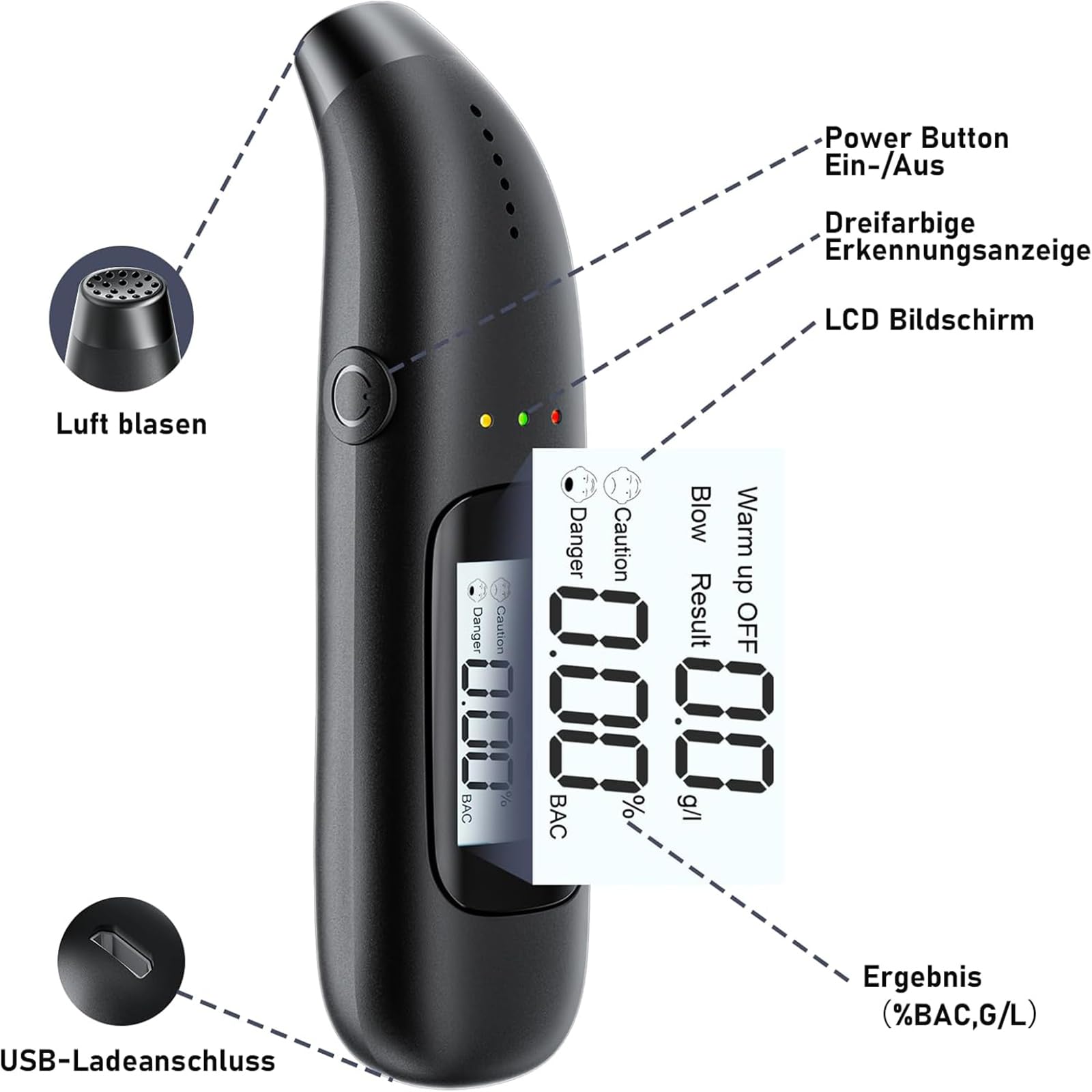 éthylomètre Numérique LCD Olubfdh Ethylotest De Police Avec Affichage Digital LCD Bleu, Avec Batterie Rechargeable USB Ethylotest Professionnel, Embout Buccal Inutile, Pour Utilisation à La Maison Ou Lors De Soirées Dépistage Alcool Fête Maison Akozon Testeur d'alcool portable Écran LCD numérique portable analyseur... Led Voiture Interieur Alcootest Ethylotest Electronique,Rechargeable USB Portable Numu00e9rique Ethylotest Electronique Homologué Nf 【Lecture rapide et précise】cet ethylotest utilise un capteur d'alcool à semi - conducteur de haute précision, une cabine de purification intégrée, après avoir soufflé, après avoir filtré d'autres impuretés, il suffit de laisser l'alcool pour la surveillance, les résultats peuvent être affichés en quelques secondes, la lecture est plus précise et plus rapide Ethylotest de Police avec Affichage Digital LCD Bleu, avec Batterie... 【Facile à utiliser】ce testeur d'alcool est très facile à utiliser: appuyez sur la touche une seconde ou deux pour l'allumer, attendez le préchauffage pendant 10 secondes après l'avoir allumé, puis au deuxième 10 secondes, commencez à souffler, attendez quelques secondes après le soufflage pour afficher les résultats du test et avoir une invite LED Un cadeau significatif pour la famille ou les amis qui aiment boire Spécifications: Nom du produit: ethylotest Electronique Matériel: ABS Couleur: noir Taille: 9., 5x2., 5x1., 5cm Indicateur lumineux résultats correspondants: Vert: sans alcool Jaune: avec alcool Rouge: ivre au volant Plage d'essai: 0., 000 ~ 0., 199% bac Valeur d'erreur: 0005% bac Temps de réaction: moins de 5 secondes Tension de fonctionnement: 5V Le paquet contient: 1 x ethylotest électronique 1 x câble USB Notes: Une fois allumé, attendez 10 secondes avant de souffler 【3 couleurs LED affichage des résultats】notre alcootest avec rouge, jaune, vert trois LED invite light Design, peut facilement voir les résultats du test d'alcool par la couleur de la lumière, même sans regarder les chiffres de l'écran, vert pour aucun alcool, jaune pour alcool, rouge pour conduite en état d'ébriété Description du Produit: Caractéristiques: Avec une nouvelle conception sans contact mise à niveau, pas besoin d'installer une buse de soufflage, plus propre et hygiénique, petit et portable, évitez efficacement les bactéries pouvant résulter du tube de soufflage Avec capteur d'alcool à semi - conducteur de haute précision, cabine de purification intégrée, après soufflage, après avoir filtré d'autres impuretés, ne laissant que l'alcool pour la surveillance, quelques secondes peuvent montrer les résultats Avec rouge, jaune, vert trois types de conception de lumière d'invite de LED, même sans regarder les chiffres d'écran, peut facilement voir les résultats de test d'alcool par la couleur de la lumière, la lumière verte signifie sans alcool, la lumière jaune signifie avec alcool, la lumière rouge signifie conduite ivre Appuyez sur la touche pendant une seconde ou deux, attendez 10 secondes pour le préchauffage après l'avoir allumé, puis au deuxième 10 secondes, commencez à souffler, attendez quelques secondes après le soufflage pour afficher les résultats du test et avoir une invite lumineuse LED Idéal pour les fêtes, les bars, les familles, les voitures.
