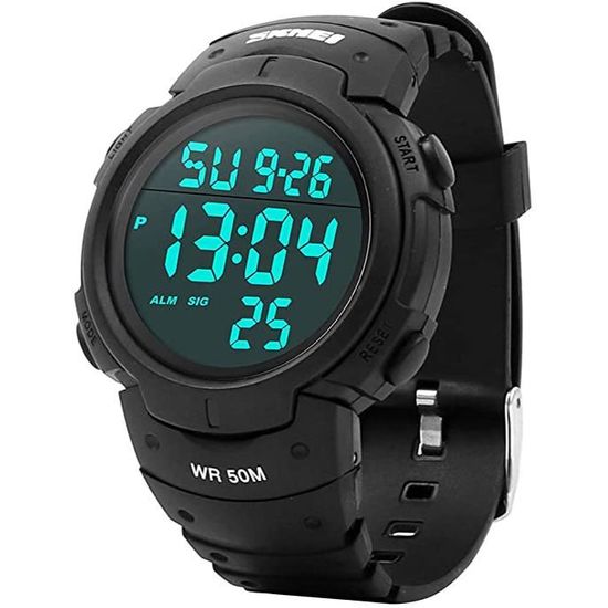 [Compatible Android & IOS] Cette montre militaire conçue avec une compatibilité double système et prend en charge Bluetooth 4., 0, Android 4., 3 et supérieur / iOS 7., 0., Connectez-vous simplement au téléphone et téléchargez l'application, vous obtiendrez toutes les données en temps réel et ne manquerez jamais un appel ou un message à l'extérieur sans prendre votre mobile. Montre homme de marque de luxe montres en bois multifonction étanche... Le boîtier est fabriqué en matériau ABS dur de haute qualité avec couvercle inférieur en acier inoxydable tandis que le bracelet est en PU doux et durable. Il suffit de remplacer la batterie par une nouvelle lorsque la batterie est épuisée. Montre Carrée Homme TONSHEN Montres LED Digital Sport Militaire 5ATM Etanche L'eau Montre Numérique Longue Autonomie [Design de mode et qualité supérieure] Cette montre pour hommes est livrée avec un look de style militaire qui est à la mode et confortable à porter. Alors ne cherchez pas plus loin! Un cadeau parfait pour les hommes et les garçons. C'est bien fait, très facile à programmer et à lire même la nuit. [Largement utilisé dans la vie] Cette montre étanche est plus intelligente et plus intelligente que la montre numérique traditionnelle, vous apportant une toute nouvelle expérience de montre de sport. Spécifications:Nom: Montre-bracelet militaireImperméable à l'eau: 50M étancheMatériau du couvercle inférieur: acier inoxydableMatériau miroir: AcryliqueMouvement : mouvement électroniquePoids de la table: 68GDiamètre du cadran: 52MMPlage d'usure: 140MM-230MMLe forfait comprend:1 x montre de sport1 x boîte de montre1 x Manuel de l'utilisateur N'avez plus la peine de charger, très approprié pour les activités de plein air. Qu'il s'agisse d'analyser ses performances ou de progresser dans ses pratiques sportives, la montre de sport constitue une formidable alliée. Voici notre sélection des meilleures de la catégorie Les personnages sont beaux et grands et faciles à lire en un coup d'œil. Parfait pour une utilisation intérieure et extérieure comme la course, l'escalade, la pêche, la natation, la randonnée, l'alpinisme, le camping et l'exercice. HFWXYSA Montre Sport Homme, Affichage LED Analogiqu Digital Double