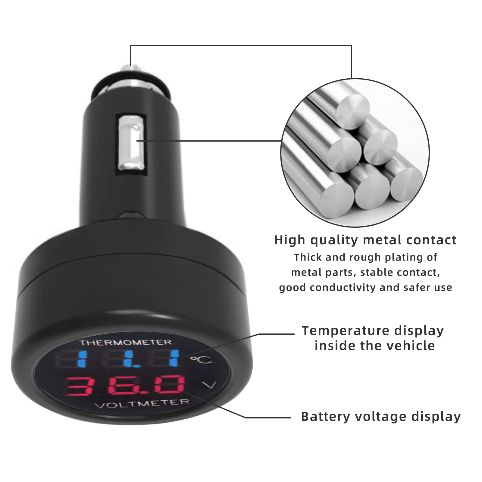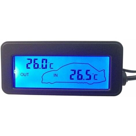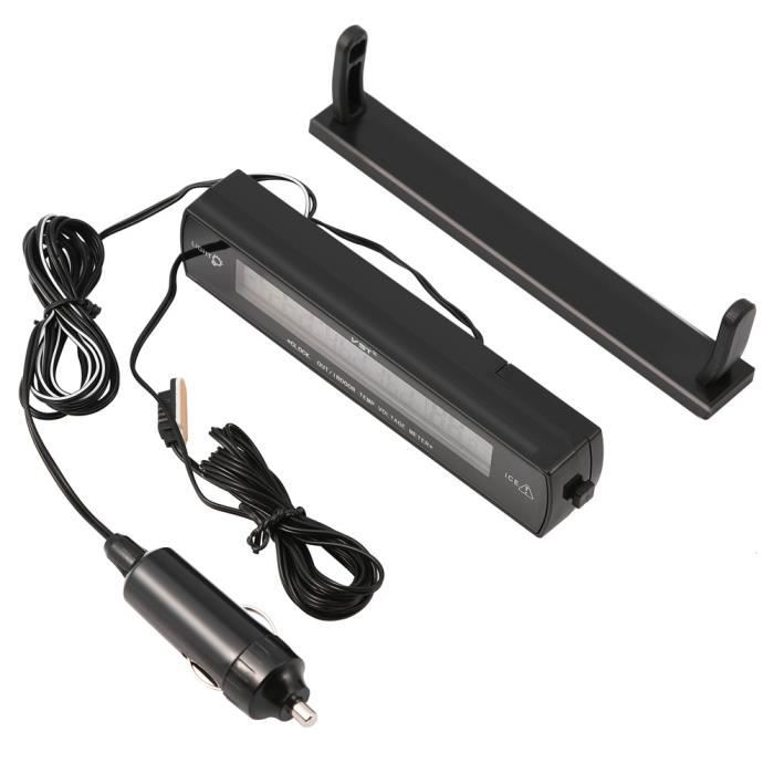 Fonction snooze d'alarme avec cinq minutes d'. Alarme Surtension Sous-tension Thermomètre Intérieur Auto Voltmètre Voiture Digital + Thermomètre - 12V/24V - Prise Allume-Cigare - LCD LED - Pour Auto Et Camion Thermomètres Pour Auto Thermomètre Voiture écran Rétroéclairé La description: - Ce compteur de thermomètre affiche les relevés tempérés précis dans et à l'extérieur de la voiture. Le rétroéclairage LED peut être sélectionné avec la fonction 2 couleurs.La voiture a un rétroéclairage lorsque la voiture est allumée et le contenu LCD est entièrement affiché.Il est alimenté par une batterie de secours et n'a pas de rétroéclairage - Plage de mesure de température: - ~ 70 degrés. - Résolution du thermomètre: 1 degré, précision: + - 1 degré. Avec son affichage LED rouge bien visible, même de jour, il vous indique en permanence la tension de votre système électrique (de 6V à 33V, donc compatible 12V... - fonction snooze d'alarme avec cinq minutes d'. L'appareil vous avertit également la tension de la batterie de votre voiture et avec son capteur intégré d'alarme vous avertit de excessive ou sous les opérations normales de tension. - Orange ou bleu réglable rétro-éclairage dirigé - d'alarme et de vous alerter tension est excessive ou trop faible - Taille: 130x38x55mm / 5., 12x1., 5x2., 17inch - Matériel: plastique ABS - La couleur noire Le forfait comprend: - 1x thermomètre auto - 1 x Utilisateur - 1x détail- Compteur Velo Moniteur Digital Voltmètre Et Thermomètre Pour Véhicule 12-24V - Modèle CS-302, écran Rouge/bleu Alimentation 12 V - Basculer l'affichage entre 12 heures et 24 heures. Basculer l'affichage entre 12 heures et 24 heures.