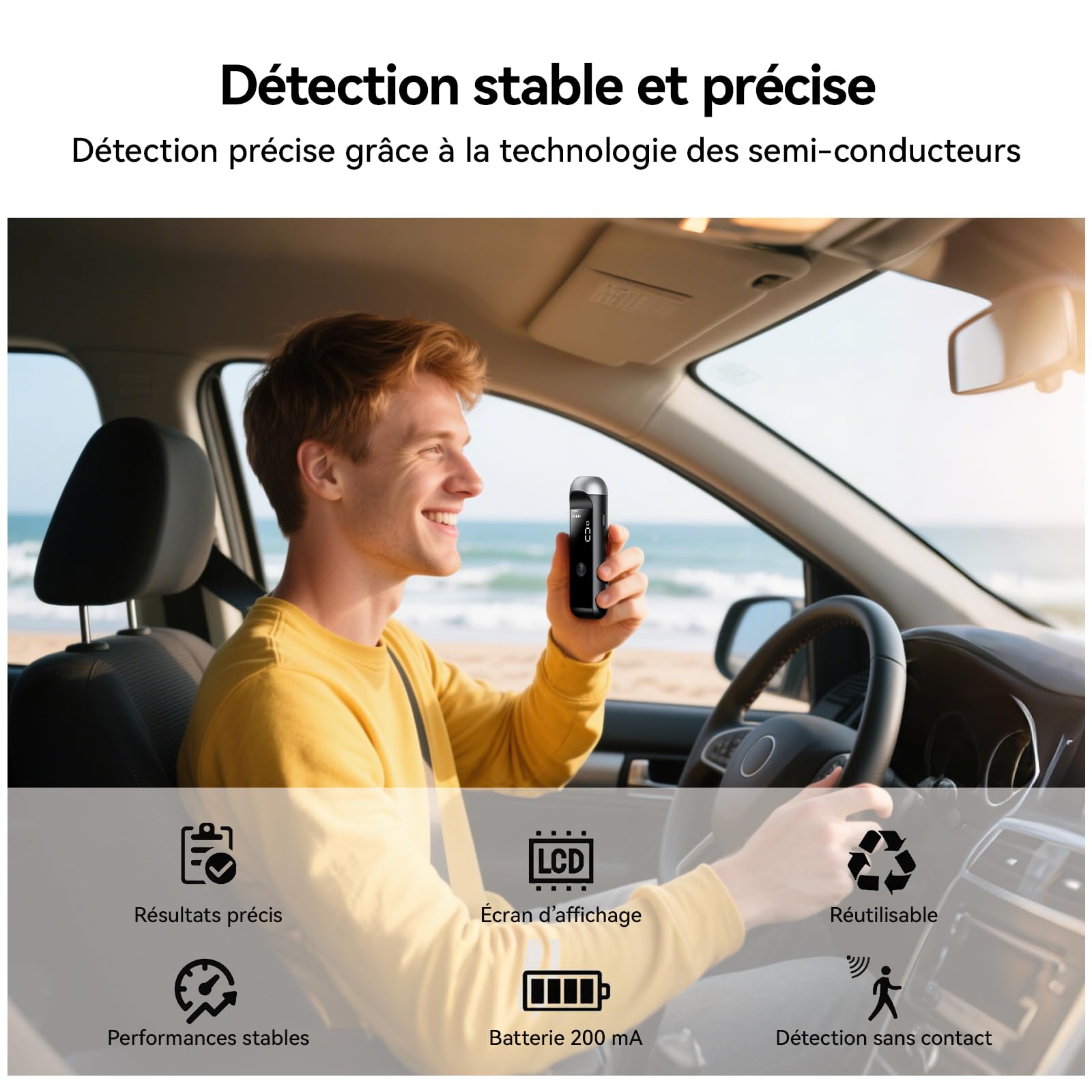 Testeur D'Alcool Portable Avec Écran LCD, Test De Conduite En Etat Divresse Detecteur Dalcool Plaque Dimmatriculation Stationnement Temporaire~p121650917 Il offre des fonctionnalités telles que des tests d'alcoolémie, un éthylotest et des éthylotests faciles à utiliser. éthylotest écran LCD Dilwe Analyseur D'alcoolémie Écran LCD Numérique Portable Analyseur De Testeur D'alcool Portable Que vous ayez besoin d'un éthylotest fiable pour la maison ou en voyage, cet éthylotest portable est indispensable. Format briquet, rechargeable en USB‑C et usage enfantin: on allume, compte à rebours, on souffle 3 à 5 secondes et le résultat s'affiche avec alerte sonore en cas de dépassement Le noir - Testeur de respiration sans Contact, Rechargeable, très... Écran clair : l'écran haute définition du testeur d'alcool affiche clairement les lectures instantanées, vous permettant de détecter facilement la teneur en alcool et le produit est un mini testeur d'alcool compact et portable qui peut être mis dans un sac à outils ou une poche de voiture, vous permettant de tester à tout moment, n'importe où Soyez en sécurité et informé grâce à nos solutions de dépistage d'alcool, notamment des éthylotests et des fonctionnalités d'éthylotest. Notre éthylotest est doté d'une batterie rechargeable haute capacité offrant des semaines d'utilisation régulière sur une seule charge. L'appareil est compatible avec le chargement USB, ce qui facilite les tests en voiture et les déplacements. Conception sans contact : cet éthylotest adopte une conception sans contact rapide et pratique, éliminant le besoin d'un embout buccal jetable, évitant les conditions insalubres causées par de multiples contacts tout en garantissant des résultats de test précis et fiables Cet éthylotest compact et portable est conçu pour des tests d'alcoolémie rapides et précis.