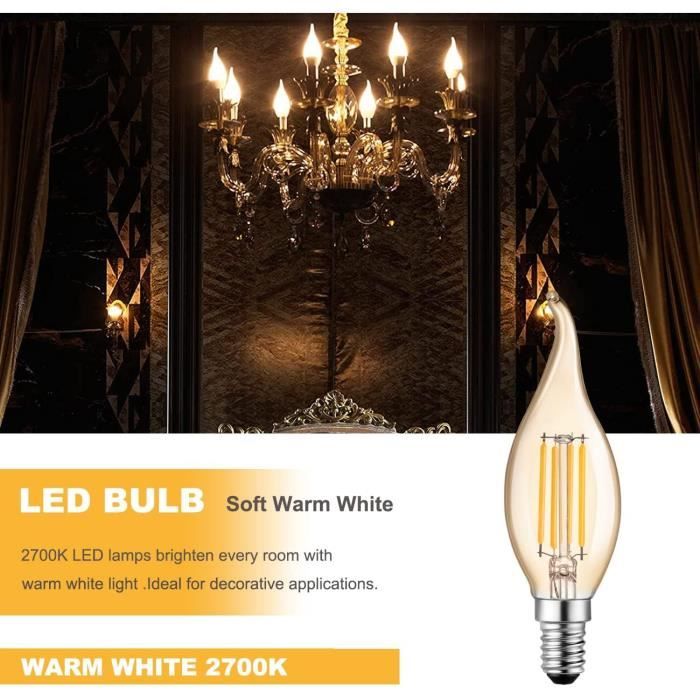 E14 Bougie Ampoule Led,4 W Dimmable C35 Bougie Lampe Pour Lustre,E14 4W... Remplacer 40 W ampoule à incandescence par 4 W Ampoule LED, plus de 90% d'économies sur l'électricité Bill of Lighting. Les ampoules BLANC FROID et chez vous pour un éclairage nostalgiques et Vieille. Blanc Froid 6500K E14 Bougie Lampe LED Dimmable Pour Lustres, Ampoule à Filament LED C35 Lot De 12 4W 400lm Lot de 12 à incandescence filament C35 LED 4 W E14, intensité non réglable, AC 220-240 V. Lot de 50 Ampoules LED E27 A60 8,5W V-TAC VT-2099 - 200 ° - Blanc froid... Caractéristiques : Marque : ougeer Flux Lumineux : 400 lm Température de couleur : 6500 K Puissance nominale : 4 W Durée de vie moyenne : 30000 heures Douille culot : E14 Piston extérieures : C35 Couleur de la lumière : blanc froid 6500 K Diamètre : 35 mm Longueur totale : 123 mm Applications : De l'accentuation et éclairage général dans des salles de vente, vitrines, restaurants, bars, hôtels, couloirs ou corridors, zones résidentielles, salles de bains, et bien d'autres domaines d'application. AMPOULE LED E14 BOUGIE FILAMENT COG 4W 350LM (ÉQUIV 35W) BLANC TRÈS