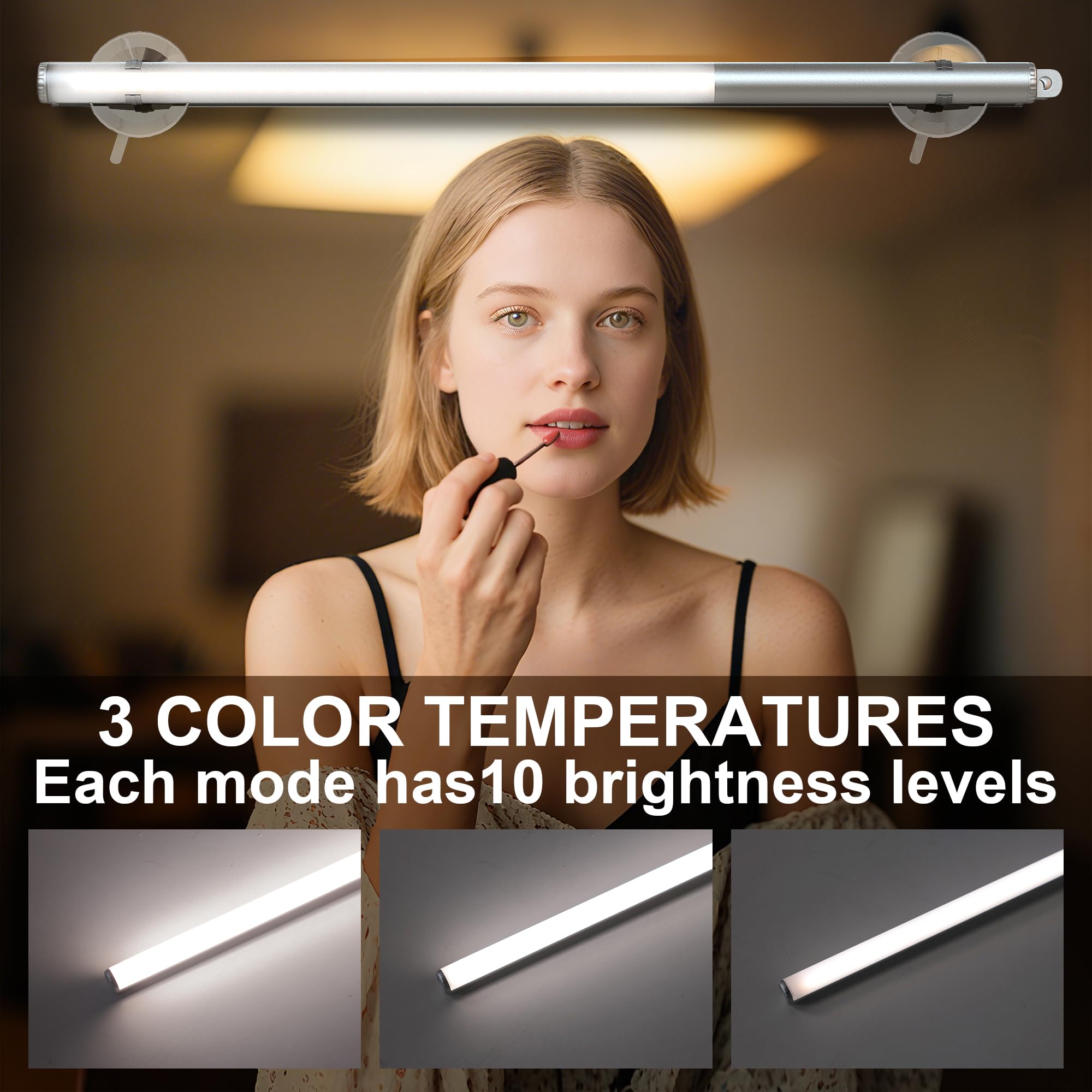 Funmo LED Lampe Maquillage, Lampe Maquillage Portable Avec 【Réglage de la luminosité et de la température de couleur】Un appui court sur la lumière LED pour miroir sert de bouton on/off. Lampe Led Miroir Maquillage Deecam Décodage LED Dimmable Pour Miroir De Maquillage,3 Modes Et Lampe Miroir Maquillage Elle se transporte facilement lors des sorties ou des déplacements, répondant ainsi aux besoins d'une utilisation mobile. Miroir Maquillage Led Portable Dimmable Voitures Facile À - Temu France Miroir Maquillage Avec Éclairage Led Modes Regeables Ft Voe Pliant(Avec... 【Large éventail d'applications】Cette lumière LED pour miroir à maquillage peut être utilisée à diverses fins : comme éclairage pour le maquillage, éclairage complémentaire quotidien, décoration intérieure, accessoire de déplacement, éclairage de chambre à coucher ainsi que comme lumière auxiliaire pour la photographie, etc. De cette manière, elle peut s'adapter flexiblement à différents scénarios d'utilisation, tels que le maquillage quotidien, le retouche précise du maquillage, etc. De plus, c'est un cadeau parfait pour les amateurs et les amis à la Saint-Valentin, Noël, les anniversaires ou autres occasions fêtes importantes – elle allie praticité et atmosphère festive. 【Conception portable】Cette lumière de table de maquillage de 10 W intègre une batterie lithium-ion de grande capacité de 800 mAh, alliant les avantages d'une taille compacte, d'un poids léger et d'une longue durée d'utilisation. À l'arrière des aimants se trouvent des feuilles adhésives, de sorte que la lampe peut être installée à n'importe quel endroit souhaité à l'aide des aimants – l'installation est terminée en quelques secondes. 【Conception protectrice pour les yeux】Cette lumière LED pour miroir est un éclairage idéal devant le miroir : elle émet une lumière sans scintillement et sans éblouissement, ce qui en fait une lampe classique spécialisée pour la salle de bain.