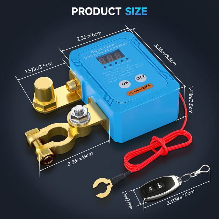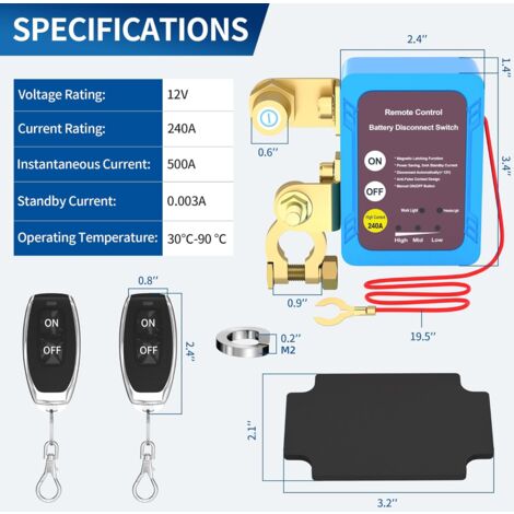 Telecommande Orange Disjoncteur De Batterie Télécommandé - OKZ - Sans Fil - 12V - 240 A Déconnecteur Batterie Sans Fil 100m compliqué ajouter jupon montage coupe circuit batterie bateau Banzai Critique Ad Bateau télécommandé sans fil 2.4Ghz - PWSHYMI - Grande jeux mecanique... Cela garantit que vos réglages à distance sont toujours prêts à l'emploi, vous offrant une expérience utilisateur sans interruption et facilement adaptable à vos besoins 【Affichage LED de Tension en Temps Réel】Ce coupe-circuit pour batterie télécommande est doté d'un écran LED qui permet de surveiller en temps réel la tension de votre batterie. Si la tension descend en dessous de 11,8 V, le système se met automatiquement en arrêt après 120 secondes. 【Excellente Construction en Cuivre】Fabriqué en cuivre pur, ce disjoncteur de batterie télécommandé sans fil est conçu pour gérer aisément des courants allant jusqu'à 4,0 A. 【Fonction de Désactivation de la Télécommande】Pour prévenir toute perte de puissance accidentelle, ce coupe-circuit de batterie désactive automatiquement la télécommande si la tension dépasse 13,2 V. Avec une portée allant jusqu'à 100 mètres, vous bénéficiez d'une grande flexibilité d'utilisation tout en restant protégé contre les surcharges Sa compatibilité étendue en fait un choix idéal pour la plupart des configurations, vous permettant d'utiliser cet équipement avec confiance dans différents contextes. Interrupteur de télécommande de batterie - VBESTLIFE - 12V 200A...