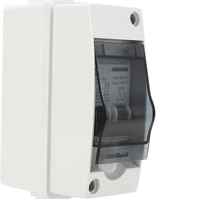 Boîtier étanche IP65 Disjoncteur Miniature CC, 2 Pôles 1000 V 50 A PV Interrupteur De Déconnexion Solaire Avec Isolateur De Circuit Photovoltaïque Pour Panneaux Solaires, Maison, Camping-car Sectionneur DC Solaire INSTALLATION SANS EFFORT] : Installez rapidement et en toute sécurité ce disjoncteur solaire PV DC 500 V entre vos panneaux solaires et l'onduleur pour une configuration sans tracas VBESTLIFE Disjoncteur miniature Disjoncteur DC Protection contre les INSTALLATION FACILE: Le boîtier de distribution solaire photovoltaïque DC est installé entre le panneau solaire et l'onduleur solaire, avec une installation rapide, plug and play. Botier de combinaison PV Disjoncteur Miniature PV Combiner Box Interrupteur de Déconnexion avec... UTILISATIONS MULTIPLES: Applicable au système connecté au réseau de panneaux solaires PV, au système solaire hors réseau, au système de production d'énergie solaire, etc. 120x52x90mm/4,7x2x3,5 pouces Entrée de câble: PG20 4 ² Câble de sortie Gland: PG20 4 ² Tension d'isolation nominale (Ui): 1000V Courant nominal (Le): 50A Tension de fonctionnement maximale (Ucpv): 1000V Tension de fonctionnement nominale: 1000V Capacité sectionnelle (USI): 6KAApplication: Applicable au système de panneau solaire photovoltaïque connecté au réseau et au système solaire hors réseau, système de production d'énergie solaire, domestique, VR, etc. Étanche IP65 : le boîtier de distribution a un degré d'étanchéité IP65, permettant une installation intérieure et extérieure, et peut être utilisé dans des conditions météorologiques extrêmes. Spécification: Type d'article: Commutateur de déconnexion DC Modèle: BOB7Z-63 50A Tension maximale: 1000V Chaque entrée Courant de court-circuit CC maximum (Isc): 50A Matériel: Polycarbonate, ABS Grade de protection: IP65 Taille du produit: env.