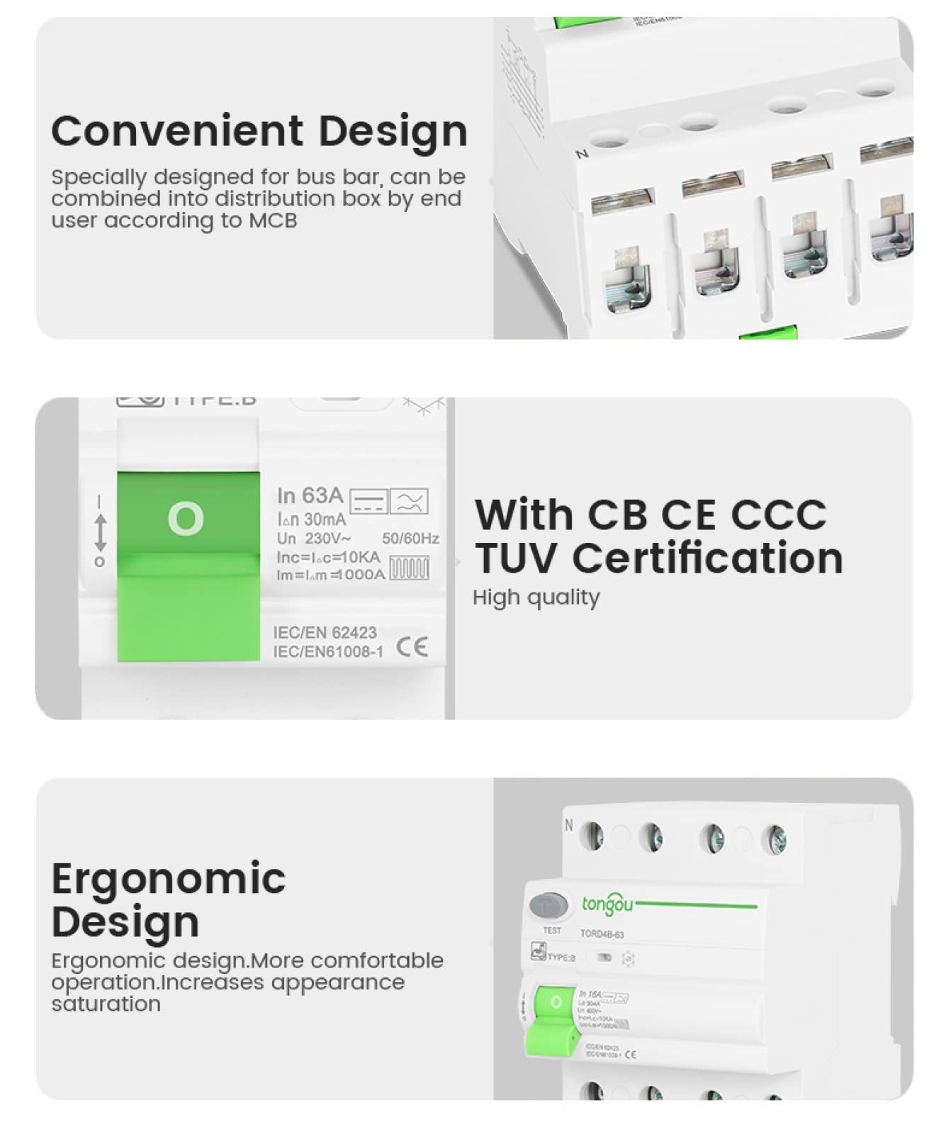 1X(AC 2P 6KA RCCB RCD 230V Disjoncteur à Courant RéSiduel Disjoncteur Diffé7009 EUR 21,56 Type : Fuite à la terreNuméro de modèle : TORD4B-63Tension nominale : 230 V/400 VCaractéristique de courant résiduel: type BCourant de fonctionnement résiduel nominal : 30 mAPouvoir de coupure : 10 KAModèle : Type électromagnétiqueFréquence nominale : 50/60Hz, 1 Protection Différentielle Courant Continu Disjoncteur électromagnétique à Courant Résiduel, 2P 32A 10/30/100/300mA Type A RCCB RCD ELCB Sécurité électrique Installation Domestique Disjoncteur Type Ac Rccb Disjoncteur À Courant Résiduel... ETEK EKL1-63B Disjoncteur différentiel à courant résiduel 10 kA type B...