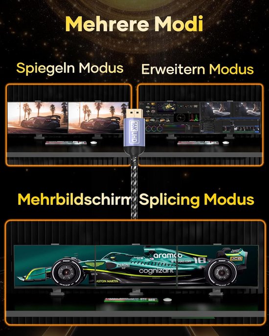 ✅ Sécurité : une protection de verrouillage (verrouillage) placée sur les connecteurs empêche la déconnexion accidentelle du connecteur de la prise Câble de raccordement DisplayPort 2., 0 avec protection anti-verrouillage. - Prend en charge les échantillons de couleurs aux formats 4:4:4, 4:2:2 et 4:2:0., - Prend en charge la compression Display Stream 1., 2a (DSC), HDR10, HDCP 1., 4 et HDCP 2., 3., Débit de données : maximum 52,22 Gbit/s (liaison UHBR 13., 5 par voie - 54 Gbit/s). Connecteur DisplayPort des deux côtés avec protection de verrouillage. Bande passante jusqu'à 54 Gbit/s - UHBR 13,5 - 13,5 Gbit/s par voie Prise en charge de la compression du flux d'affichage (DSC) 1., 2a, le transport multi-flux (MST) et la correction d'erreur avancée (FEC)., DisplayPort 2., 0 - Résolutions jusqu'à 8K / UHD-2 @ 60Hz et 4K / UHD @ 240Hz Ce câble DisplayPort de qualité supérieure prend en charge une bande passante maximale de 52,22 Gbit/s (via UHBR 13., 5) résolutions jusqu'à 8K / UHD-2 @ 60Hz et 4K / UHD @240Hz (échantillonnage des couleurs 4:4:4 / RGB). Les connecteurs en métal massif et blindés avec contacts plaqués or garantissent une connexion optimale. Boîtier entièrement en métal galvanisé et connecteurs plaqués or avec protection de verrouillage. Résolutions jusqu'à 8K / UHD-2 @ 60Hz et 4K / UHD @240Hz – Idéal pour les applications de jeu. Grâce à la galvanisation, les connecteurs sont protégés contre la corrosion. Ainsi, tous les formats audio connus peuvent être traités, par exemple les formats sonores ambiants Dolby Atmos, DTS:X et Auro 3D. Câble professionnel DisplayPort de qualité installation La résolution maximale peut varier en fonction du matériel connecté et du système utilisé., ✅ DisplayPort 2., 0 – Résolutions jusqu'à 8K / UHD-2 @ 60Hz et 4K @ 240Hz – Idéal pour les applications de jeu et multimédia exigeantes Bande passante jusqu'à 54 Gbit/s – UHBR 13,5 – 13,5 Gbit/s par lane, prend en charge DSC 1., 2a, transport multi-flux (MST) et FEC Le FEC garantit une transmission sans erreur des données DSC compressées. Associé au triple blindage de haute qualité, cela permet une transmission du signal sans perte et une plus grande résistance à la rupture du câble. Le tressage en nylon rend votre câble encore plus beau. UGREEN Cabo DisplayPort 2.1 [certificado VESA] DP2.0 80 Gbps Suporte 16K a 60 Hz 8K a 240 Hz 4K ✅ Longueur : 3 m - Blanc MC Computer Shop Karlsruhe Südstadt - Computer, Notebooks, Gaming PC... - Prend en charge 8K / UHD-2 à une fréquence de 120 Hz (échantillonnage de couleurs 4:2:0 ou DSC). Câble Gaming Displayport 8k 60hz Python Câble DisplayPort 2.0 De Qualité Supérieure - 3 M - 54 Câble Displayport 4k 240hz - Section de conducteur : AWG28/1., - Blindage : triple blindage (blindage total : blindage tressé, blindage par paires) Remarque : Veuillez noter que les échantillons de couleurs plus élevés réduisent la fréquence de rafraîchissement. - Prend en charge 4K / UHD à une fréquence de 240 Hz (échantillonnage de couleurs 4:4:4 / RGB). Caractéristiques techniques : Prise en charge DisplayPort 2., 0, rétrocompatible. Matériaux de haute qualité, triple blindage et nylon tressé. ✅ Qualité supérieure : connecteurs entièrement en métal galvanisé, tresse en nylon robuste et élégante, conducteur en cuivre stable, contacts plaqués or et triple blindage solide