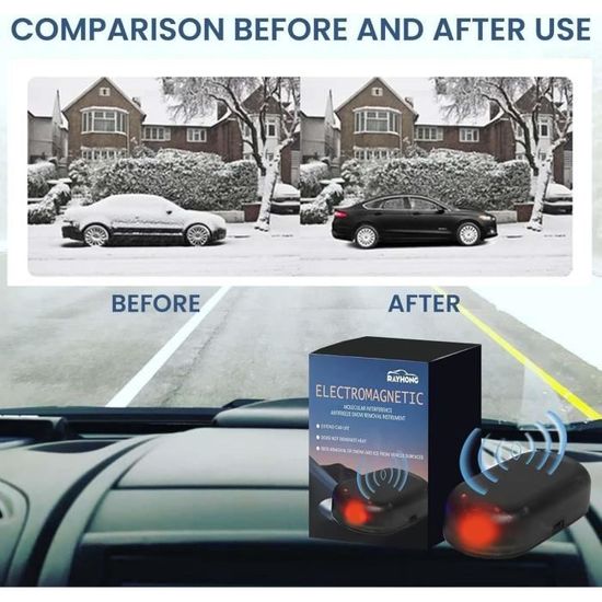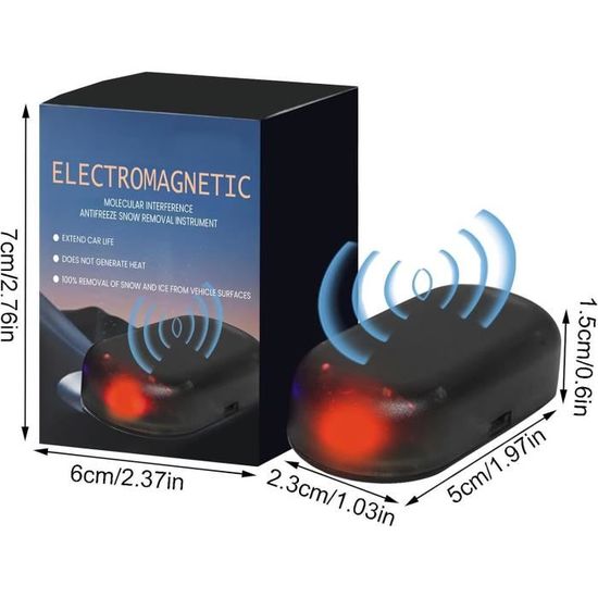 Profitez d'un pare-brise clair et de conditions de conduite plus sûres chaque fois que vous prenez la route. Dispositif Dégivrage électromagnétique Lot De 2 Dispositifs De Déneigement électromagnétiques Antigel Pour Degivrant Vitre Voiture Caractéristiques : 1., Technologie électromagnétique : utilise la technologie électronique active pour empêcher la formation de glace en perturbant les molécules d'eau., 2., Énergie sûre : source d'énergie naturelle, sans danger pour les humains et les animaux domestiques, rafraîchit également l'air., 3., Pas de produits chimiques : aucune substance spéciale nécessaire ; affecte les molécules d'eau pour éviter le gel., 4., Double alimentation : rechargeable par USB, dure 4 jours, ou utilise l'énergie solaire pour plus de commodité., 5., Portable et facile : compact, léger et simple à utiliser pour un dégivrage rapide. 2 en 1 Pelle à Neige Télescopique Dégivrage et Balayage de La Neige... Dimensions du produit : 5 x 2,6 x 1,5 cm. Contenu du paquet : 1/2 pièces de déneigement électromagnétique. Lot de 2 dispositifs anti-gel et de déneigement à ondes électromagnétiques pour voiture,dispositif de déneigement électromagnétique ; Livré entre... Étape 3 : Tournez l'interrupteur pour activer l'appareil. Mode d'emploi : Étape 1 : retirez le ruban adhésif double face à l'étape inférieure. Vibrations de même fréquence : l'appareil émet des micro-ondes qui résonnent avec les molécules d'eau même à des températures glaciales, maintenant leur activité et les empêchant de geler, permettant une surface de voiture sans glace même dans des conditions hivernales difficiles. Lot de 2 Dispositifs Antigel Électromagnétiques pour Étape 2 : fixez-le dans une position stable dans la voiture. Aucune substance spéciale nécessaire : ce déneigement pour vitres de voiture ne nécessite pas l'utilisation de substances spéciales.