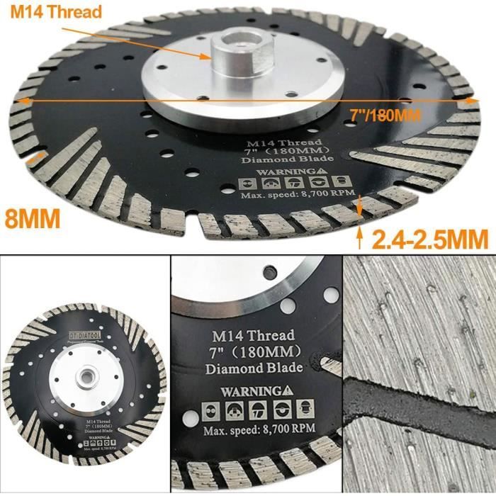 Disque Diamant Super Mince 150mm Turbo Lame Diamantée à Tronçonner pour Coupe de pierre et matériaux de construction, béton, brique, carrelage, granit, marbre, maçonnerie Disque à Tronçonner Granit Béton Duokon Roue De Coupe Disque à Tronçonner Diamant Lame De Scie Disque A Tronçonner Diamant Le disque diamant Tigrezy de 180 mm est conçu pour le meulage du béton, de la pierre et du granit. Il est idéal pour le broyage à sec et humide, offrant une performance supérieure grâce à sa conception sans vibrations qui réduit la fatigue de l'opérateur Disque À Tronçonner Diamant Lame De Scie Circulaire Roue Bleu Marbre...