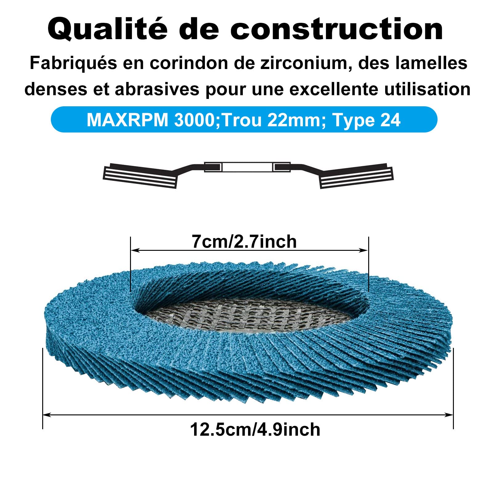 Disque Meuleuse 125 Metal Disques à Lamelles - Industrial Line Zirconium | Abrasives | French Corindon Zircone K60 Disque De Poncage 125mm Disque à Lamelles 115MM Grain 40 60 80 120 Plateau abrasif à lamelles 125 mm P 120, corindon de zirconium... L'abrasif en corindon de zircone de qualité supérieure au grain K60 permet un travail efficace sur le métal, l'acier inoxydable et le bois. Le kit contient 20 disques parfaits pour une utilisation avec des meuleuses d'angle standard. Grâce à leur construction spéciale, ils s'adaptent parfaitement à la surface à travailler et permettent ainsi un résultat de travail précis. Les disques à lamelles GZKTY sont le choix idéal pour les travaux de ponçage exigeants. Ces disques à lamelles sont le bon choix pour les bricoleurs et les professionnels qui apprécient la qualité et l'efficacité dans leurs travaux de ponçage. Kit pratique : 20 disques à lamelles de 125 mm de diamètre pour des temps de travail plus longs sans changement fréquent de disques Compatibilité : convient aux meuleuses d'angle standard avec support de 125 mm pour des possibilités d'utilisation flexibles Fabriqués en oxyde de zirconium de qualité industrielle, par rapport aux matériaux en oxyde d'aluminium courants, les disques à lamelles en zircone offrent une excellente résistance et durabilité., Comprend 20 disques à lamelles grain 80, idéal pour une application de meulage de petite à moyenne, pour un ponçage léger sur une variété de surfaces., Les meules à grain moyen 80 sont...