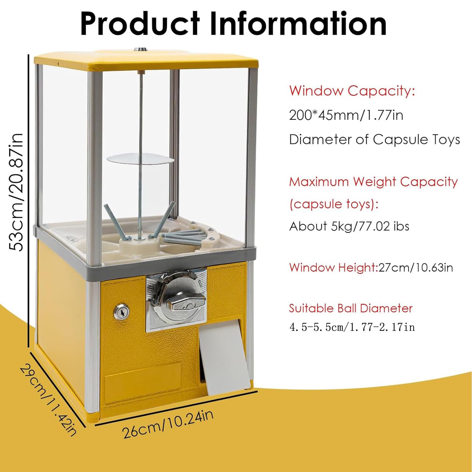 Il vous suffit d'ajouter des éléments et de supprimer des pièces régulièrement, ce qui peut vous faire gagner beaucoup de temps et d'énergie. Grande Capacité 800 Pièces Distributeur Automatique De Capsules,machine à Boules De Machine à Capsules Jouets ▶ [CONSTRUCTION POUR DURER] Notre distributeur automatique de bonbons est fabriqué en alliage d'aluminium et en alliage de zinc de haute qualité. Mesurant 26 x 29 x 53 cm, ce distributeur automatique peut contenir jusqu'à 800 à 1000 pièces ou 200 œufs torsadés (4,3 cm), éliminant le besoin de recharges... Seule notre clé correspondante peut l'ouvrir, ce qui peut empêcher le vol de vos jouets et de vos pièces. ▶ [FACILE À UTILISER] Tout ce que vous avez à faire est de mettre 2 pièces de 25 cents de chaque côté de la fente pour pièces (c'est-à-dire 2 pièces à gauche et 2 pièces à droite, totalisant 4 fentes pour pièces de 25 cents et de tourner le bouton à 360°. Photo libre de droit de Machine De Distribution De Boules De Gomme Vintage Colorée En Verre Et... ▶ [HAUTE SÉCURITÉ] Le distributeur automatique est équipé d'un verrou sur le dessus et à l'extérieur de la tirelire. pièces de monnaie tout en répondant aux besoins de divertissement des visiteurs dans la plupart des centres commerciaux et parcs d'attractions. dans le sens des aiguilles d'une montre pour déposer les articles au point de vente. Moule À Boules De Glace, Conception D'Entonnoir Souple Ferme À Trou D'Air Pour Machine À Boules Ce distributeur de bonbons est parfait pour utiliser des jouets en capsules,des bonbons,des flippers, etc. (Si vous devez changer de devise ou si vous avez d'autres exigences, veuillez nous envoyer un e-mail)