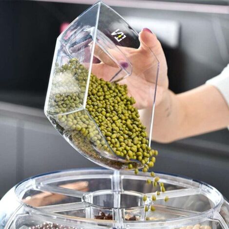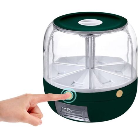 Récipient Stockage Alimentaire Distributeur De Céréales Rotatif 6 En 1 Conteneur De Stockage De Céréales, Récipient à Céréales Pour La De Cuisine Distributeur Tournant Transparent ROTATION À 360° - Notre organisation de stockage des céréales est dotée d' système de stockage rotatif, d' bouton unique et d' système de stockage... BAKAJI Distributeur de céréales double mural, distributeur à deux Démontage Libre et Empilable : Maximisez l'efficacité de votre cuisine grâce à des compartiments personnalisables et des systèmes amovibles, conçus pour désencombrer les plans de travail tout en permettant un démontage libre et des agencements empilables Boîte de rangement de Céréales 6 grilles 6 kg, distributeur de riz rotatif à 360 degrés – céréales de haricots de Céréales – boîte de rangement pour tiroir... Accès facile au rangement des grains : Doté d'une base rotative à 360 degrés et de compartiments amovibles, cet accessoire simplifie les tâches culinaires et constitue une solution idéale pour les personnes actives recherchant des options de stockage alimentaire s. Le distributeur garantit un accès facile tout en améliorant l'organisation de la cuisine grâce à sa conception . Caractéristiques:Nom: Dispensateur de céréalesCouleur: blancTaille du produit: environ 22,4 x 22,4 x 17,8 cm (8,82 x 8,82 x 7,01 pouces)Poids: 806 gMatériel: animal de compagnie, pp, hanchesCapacité: 650 ml par compartiment (3900 ml au total)Liste de colisage:1 x distributeur d'aliments secsNotes:1., En raison des différents effets du moniteur et de la lumière, la couleur réelle de l'élément peut être légèrement différente de la couleur indiquée dans les ., 2., Veuillez pardonner une légère déviation de mesure due à la mesure manuelle. Ce support de distributeur est idéal pour une utilisation dans le garde-manger ou sur le comptoir, permettant de ranger céréales, farine, sucre, bonbons, collations et légumineuses de manière ordonnée dans les placards.