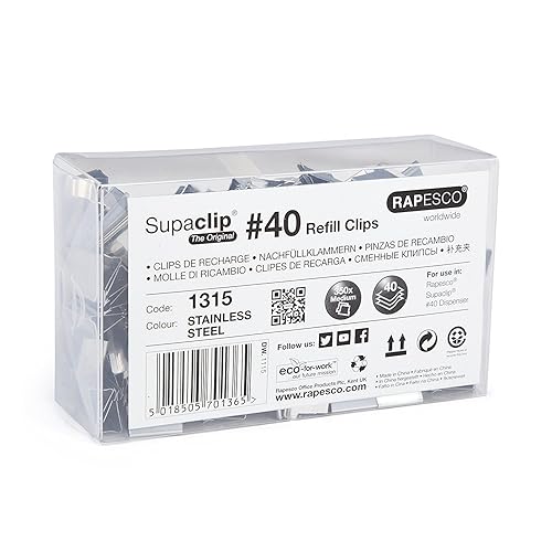Distributeur Supaclip 40 Rapesco 1370 Supaclip 40 Distributeur Transparent Avec 25 Pinces Drôles Attache Feuilles Sans Agrafe Stock Bureau - RAPESCO Pince à relier Supaclip® 40 Bleu poudre + 25 Rapesco RC4025SS Supaclip 40 Distributeur Transparent avec 25 Pinces en... Facile à déclencher, retirer et réutiliser, le distributeur Supaclip sert à attacher les feuilles ainsi que beaucoup d'autres matières. Utile pour garder en ordre les papiers et pour sceller les paquets, ce distributeur de pinces de serrage vous apporte de nombreuses utilisations possibles. Soutenu par notre garantie de 2 ans, le distributeur 40 a été conçu pour durer. Distributeur Supaclip 40 en rose pastel fourni avec 25 pinces en acier inoxydable. Le Distributeur Manuel Supaclip #40 déclenche des pinces en acier trempé Ce distributeur portable a une capacité de 8 pinces Capacité : 40 feuilles de papier Taille. 25 ; Matériau. Acier inoxydable, Plástico ; Marque. Rapesco ; Dimensions du produit. 8,1L x 10,5l centimètres ; Style. Distributeur Rose