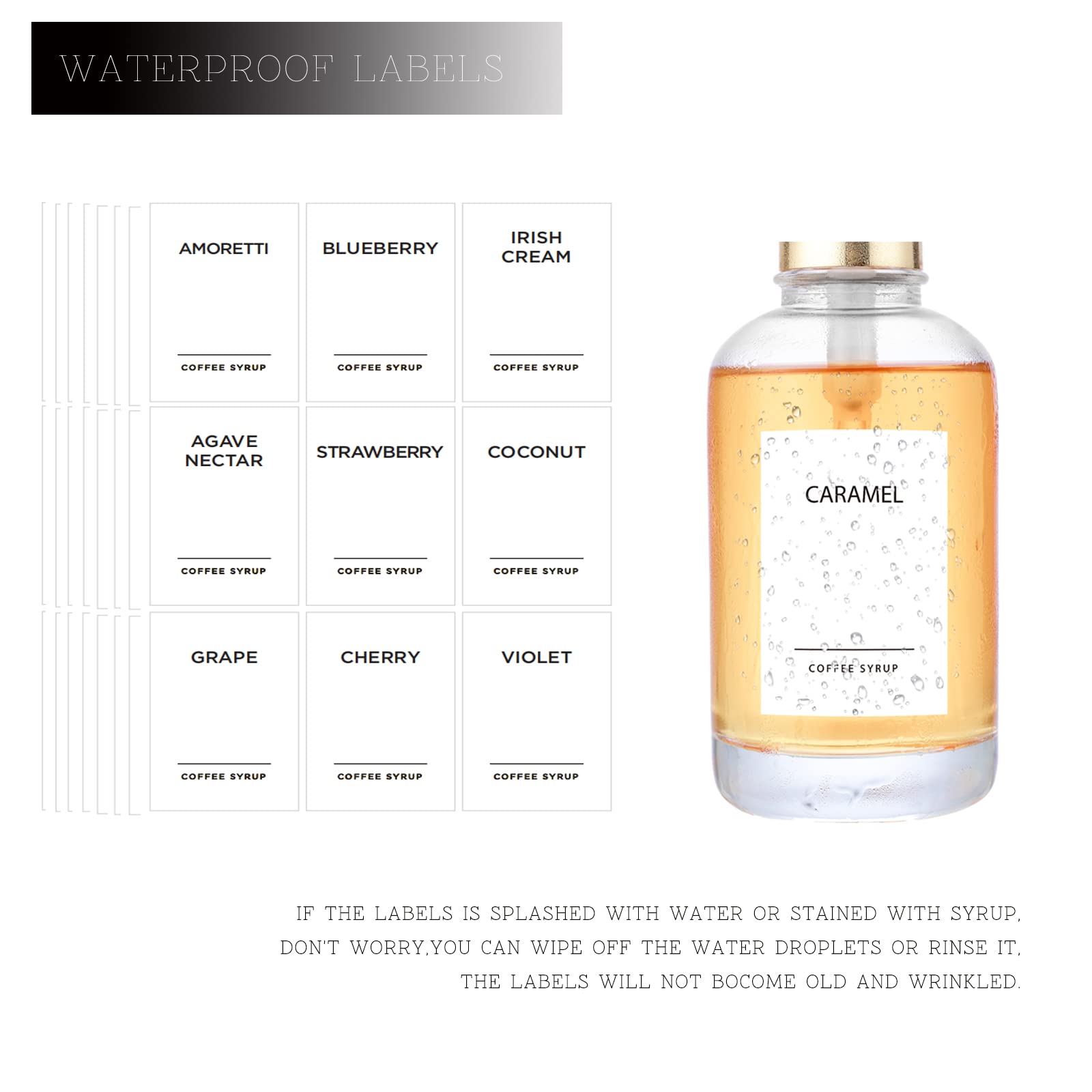 Étiquettes Vinyle Imperméable Bar Café étiquettes Sirop 4 Distributeurs De Sirop 500ml En Verre Avec Pompe - Étiquettes Incluses - Pour Bar à Café Ou Maison Pompes Sirop Verre 500ml Organisation Bar Café étiquettes Préimprimées Moustache quelque chose Malhonnêteté sirop a cafe Des sandales Relaxant sellerie 204 Étiquettes Minimalistes Pour Bocal De Salle De Bain Version... Étiquettes essentielles pour bar à café domestique : 84 autocollants de sirop de café pour bouteilles pour compléter le style minimaliste des étiquettes dans votre bar à café bien rangé Pas d'écriture désordonnée : les étiquettes minimalistes sont rectangulaires (6 x 6,5 cm) avec un texte blanc sur des étiquettes imperméables noires. et ne roulent pas, amovibles et résistantes aux déchirures Les belles étiquettes de sirop présentent un minimaliste moderne, ajoutez ces éléments énergiques à votre station de café. 84 types d'étiquettes de sirop : nous avons sélectionné des étiquettes communes pour bar à café, qui peuvent faire votre chocolat, blog, cannelle, épices de citrouille, noix de coco, sirop simple, etc. étiqueté et plus pratique à utiliser Trois couleurs au choix : nous avons conçu trois couleurs pour les étiquettes de bar à café, le texte blanc préimprimé sur du vinyle noir, le texte noir préimprimé sur du vinyle blanc, le texte noir préimprimé sur du vinyle transparent, vous pouvez choisir le style correspondant selon vos préférences ou votre style de décoration, merci de votre choix, vous pouvez nous envoyer un e-mail avec toutes les questions et vous répondrons rapidement dans les 24 heures Distributeurs sirop de café Lot de 2 avec 36 étiquettes et pope dorée...