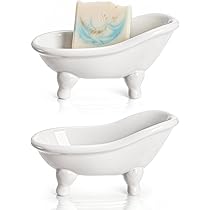 Porte-savon pour baignoire First Class Chaque porte-savon blanc mesure environ 14,2 x 7,6 x 7,6 cm (L x l x H). Accessoire Salle De Bain Porcelaine Dodococa Baignoire En Céramique Miniature à Pieds En Griffe, Porte-savon, Petit Cache-pot, Organisateur De Maquillage, Contenant, Baignoire Pour Hamster (bleu Porte-savon Déco Forme Baignoire Lot économique et portable : livré avec 2 paquets de porte-savon en céramique. Porte Savon Plateau De Savon Doré, Porte-Savon Sans Perfection En Acier... Lot De 2 Porte-Savon En Céramique, Support Savon Avec Drainage, Forme... Conçu avec trois trous de drainage au fond pour un drainage adéquat et prolonger la durée de vie de votre savon Taille compacte pour être placé en toute occasion et peu encombrant, même lorsque la pièce est limitée Nombreuses utilisations : ces petits porte-savon pour barre de douche sont des ajouts élégants à toute décoration d'intérieur. Porte-savon décoratif blanc polyvalent et élégant Nos porte-savons en céramique pour baignoire sont non seulement parfaits pour contenir du savon de bar, des savons faits maison ou décoratifs, des éponges, des brosses à récurer, des barres ponce, mais également parfaits pour être utilisés comme bibelots ou petites jardinières, bijoux et maquillage. Style unique et trous de drainage : notre mini porte-savon en porcelaine dispose d'une élégante forme de baignoire en forme de patte pour laisser les savons glissants rester en place. DEAYOU Lot de 2 porte-savon en céramique pour baignoire, porte-savon décoratif blanc, petit porte-savon en porcelaine avec trou de drainage pour douche, salle de bain, comptoir, cuisine, magasin d'éponges, brosses à récurer, peut également être utilisé comme mini jardinière, organisateur de maquillage Caractéristiques : Contenu de l'emballage : 2 paquets de porte-savon en céramique.