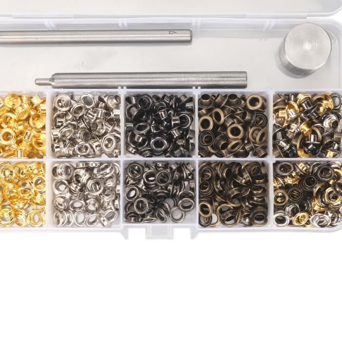 œillets Pour Reliure De Documents Estink Œillets Métalliques Dorés 4 Mm, Lot De 250, Pour Chaussures, Ceinture, Sac, Étiquettes, Vêtements, Scrapbooking Oeillet Papier Lot de 250 œillets en métal de 4 mm, perforatrice à trou unique pour chaussures, vêtements, travaux manuels, scrapbooking, papier et document Fdit Oeillets d'œillets 500 ensembles d'œillets ronds de 6 mm en cuivre... [MATÉRIAU DURABLE] Fabriqués en métal léger et pratique, ces œillets dorés de 4 mm sont résistants à la rouille et durables pour une utilisation prolongée. [LARGE APPLICATION] Kits d'œillets polyvalents adaptés aux projets de bricolage tels que les sacs, les chaussures, les bâches, l'artisanat du cuir et d'autres efforts créatifs. Couleur métallique brillante avec effet de liaison entièrement métallique, solide et belle. [Reliure de documents] Associez-la à une perforatrice pour une reliure de documents sans effort, économisant du temps et du travail. Reliure de documents simple, pratique et rapide, le matériau métallique est solide et durable. Il peut être utilisé avec une perforatrice, pour relier des documents, économisant du temps et du travail., Un sac vous suffit. Peut réparer 30 feuilles de papier de 80 g. Tampon pour œillets, kit d'œillets de bâche