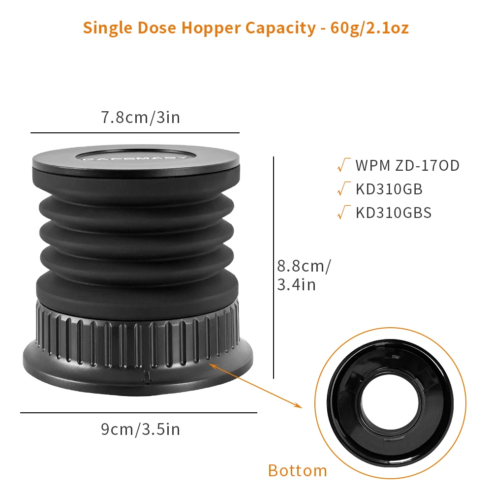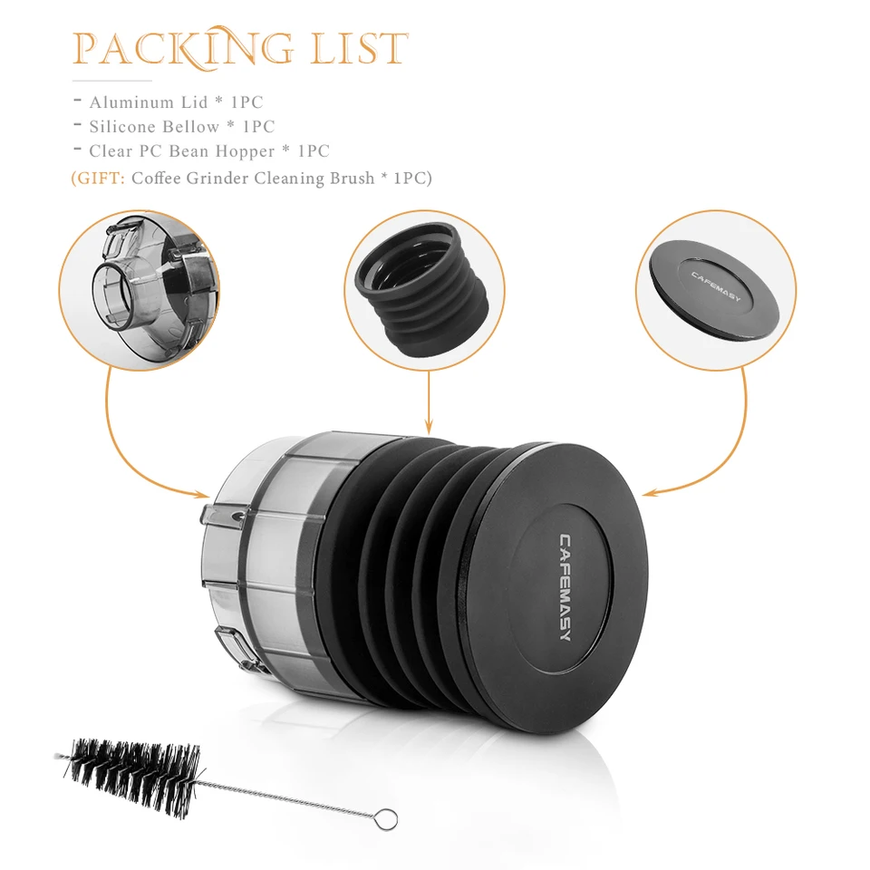 * La dose de moulin à café est ajoutée à votre moulin à café, il suffit d'appuyer sur le soufflet, et en même temps de nettoyer le reste de la poudre à l'intérieur de l'engrenage pour garder l'intérieur propre. * Le moulin à souffler est largement utilisé dans de nombreuses occasions, et peut être largement utilisé dans les cuisines, les maisons, les restaurants, les cafés. Contenu de l'emballage : 1 moulin à café. * Broyeur à souffler le bac pour nettoyer et recueillir l'excès de marc de café. Moulin à Café Electrique, Wancle broyeur cafe grain, Réglable pour * Le broyeur à dose unique est fabriqué en silicone, couvercle en alliage au design unique pour garantir une impression tactile confortable. * Les trémies à dose unique du moulin à café sont conçues pour plus de modèles de broyeurs. Moulin à grains de café, trémie à dose unique, soufflet, bac à grains, outil de soufflage pour Machine à café RF64 900N HC600 600AE · 30,66€. 409 vendus 4.7... Convient à divers environnements : pour les cuisines, les cafés, les restaurants et les stations de brassage à domicile, cet outil élève votre routine de préparation du café n'importe où. Caractéristiques : *. Caractéristiques : Nom du produit : moulin à café., Matériau : silicone., Couleur : noir. Soufflet Silicone RF64 HC600 Moulin à Café à Dose Unique Avec Soufflet En Silicone ABS Moulin à Café Dose Unique Matériau en silicone : fabriquée en silicone, la trémie à dose unique du broyeur offre une impression tactile confortable. Son design unique avec un couvercle... Manipulation confortable : fabriqué à partir de silicone avec un couvercle en alliage spécialement conçu, profitez d'une expérience tactile et confortable à chaque fois que vous l'utilisez.