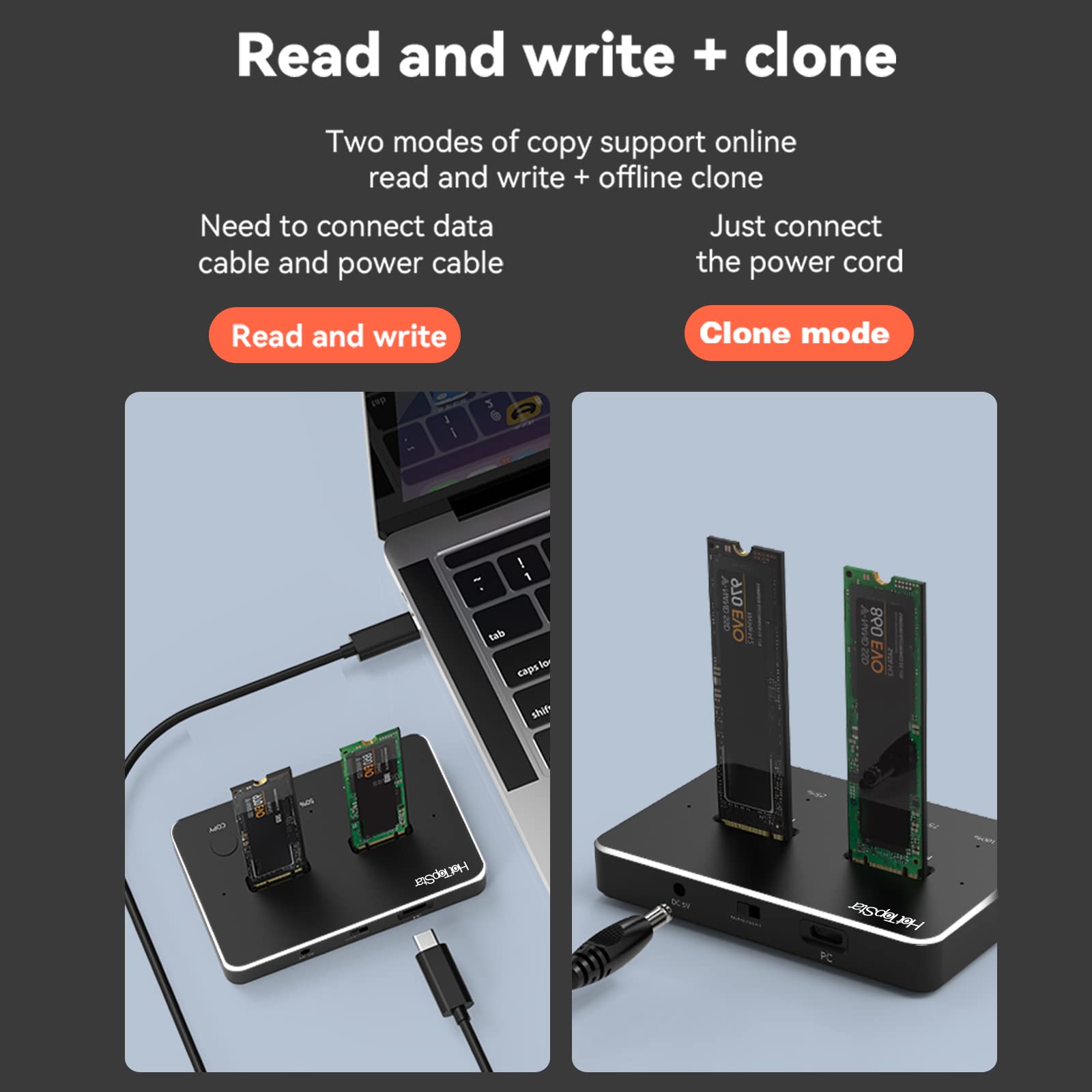 Double disque dur à haute vitesse de lecture et d'écriture: Supporte le disque dur M. Liste des colis: 1 x Station d'accueil M. SD02 PCIE NVME - Boîtier Externe Ssd À Double Baie, Boîtier Usb C M2... Station d'accueil NVME à double baie, boîtier SSD portable : SSD non inclus. Le boîtier externe NVME peut lire deux SSD M2., NVME en même temps. Transmission : NVMe 10Gbps/SATA 6Gbps 2 NVMe jusqu'à 10Gbps, supporte le disque dur M. Ce que vous obtenez : liste de colisage : 1 station d'accueil à 2 baies, 1 bloc d'alimentation, 1 câble C à C, 1 câble C à A. 2 SATA jusqu'à 6Gbps., Étapes de clonage: 1., Connectez l'alimentation électrique, tournez le commutateur à côté de l'alimentation électrique vers le disque cible, insérez le SSD à sauvegarder et le SSD cible (celui qui a la plus grande capacité)., 2., Appuyez sur la touche de copie et maintenez-la enfoncée pendant 3 secondes, les quatre indicateurs clignotent, puis relâchez-la, appuyez à nouveau sur la touche de copie, à ce stade, le produit entre dans l'état de sauvegarde, lorsque les quatre indicateurs sont toujours allumés, cela signifie que la sauvegarde est terminée. GODO NVMe/SATA Duplicateur M.2 Dual-Bay hors ligne Clone USB C vers NVME/SATA Station d'accueil pour M2 SSD M Key et B+M Key Hard Drives, Aluminium sans outil, adaptateur USB 3.1 Gen2 Type-C 2 est compatible avec les SSD M. Excellente dissipation de la chaleur La station d'accueil m. Capacité de support d'un seul disque : 2TB Le boîtier de disque dur M. Lorsque le lecteur USB C à double baie est connecté à l'ordinateur, il prend en charge la transition de données à 10Gbps du SSD NVME M. 2 au PC hôte, la transition de données à 6Gbps du SSD SATA M., 2 au PC hôte. Description du produit Station d'accueil M. En cas de problème, contactez-nous., Remarque : 1., La capacité du SSD cible doit être supérieure ou égale à celle du SSD d'origine., 2., Veuillez brancher l'alimentation, ne pas vous connecter au PC. Support multi-taille SSDs Le boîtier SSD M. Veuillez vérifier la fiabilité du disque dur. Conseil chaleureux : évitez de perdre vos données importantes, veuillez sauvegarder les données sur le disque cible avant le clonage., Boîtier SSD M. Spécifications: Supporte les disques durs : M., 2 NVMe/M., 2 SATA Protocolort Station USB-C 10Gbps SABRENT Station D'accueil SSD M.2, Double Baie NVMe Clone, Boîtier De Fonction De Duplicateur USB C 3.2 PCIe, Externe En Aluminium Pour Deux M2 NVMe Avec Alimentation, Sans Outil (EC-SSD2 Duplicateur SSD Sans Ordinateur 2 NVME/SATA adopte une conception verticale à fiches, propice à la dissipation de la chaleur et facile à remplacer le disque dur, mais ne touchez pas le SSD pendant le clonage. Augmentez la capacité de stockage en connectant un PC, des ordinateurs portables, un téléphone et d'autres appareils. Lorsque le lecteur double baie USB C se connecte à l'ordinateur, prend en charge la transition de données 10 Gbps du SSD M. Câble assorti : C vers C/ C vers A Opération facile de clonage hors ligne en une seule touche: Cette station d'accueil SSD à deux baies est facile à utiliser et ne nécessite aucun outil. Main Features: Prend en charge 2 disques durs M. Lorsque le voyant 25% clignote au voyant 100%, cela signifie que c'est terminé. 2 NVME et SATA pour M-Key et B+M Key, le boîtier pour disque dur NVMe prend en charge les SSD de taille 2230/2242/2260/2280/22110., Remarque importante : Le produit n'est qu'un boîtier externe, il ne comprend PAS de SSD M., 2., Supporte la lecture et l'écriture et le duplicateur de clone hors ligne: A propos du mode de lecture et d'écriture: 1., L'emplacement du disque SATA ne prend en charge que la clé B&M du protocole M., 2 SATA; 2., L'emplacement du disque NVMe ne prend en charge que le disque dur M., 2 à protocole NVMe; 3., En mode lecture-écriture, lorsque l'alimentation est connectée à l'ordinateur et que le voyant de la lettre du lecteur est rouge, cela signifie que le disque dur est anormal. Avec l'interface USB-C, la spécification USB3.2 Gen2 prend en charge une vitesse de transfert de données allant jusqu'à 10 Gbit/s. Il prend également en charge UASP et TRIM pour une lecture/écriture efficace des données. Plus produit : • Fonction clone hors ligne • USB3.2 Gen2 10Gbps SuperSpeed • Double baie pour SSD M.2 PCIe/NVMe à encoche M key seulement (non compatible SSD M.2... Ce boîtier de disque dur pour clé B & M, prend en charge les disques durs M., 2 SSD SATA et M. 2 NVME vers le PC hôte, la transition de données 6 Gbps du SSD M. Le SSD n'est pas inclus dans le package ; HotTopStar offre un remboursement de 30 jours, une garantie de 12 mois.