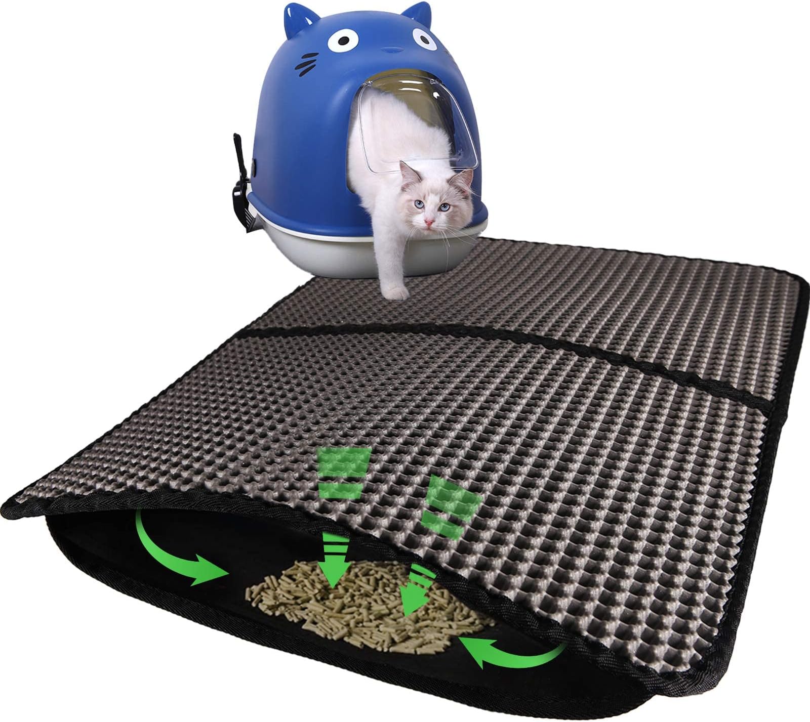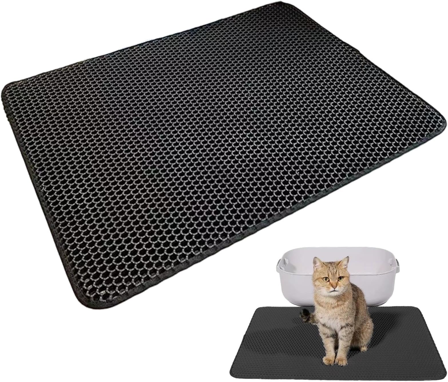 Utilisez-le comme tapis de litière pour chat ou tapis de litière pour chat pour garder votre maison propre et hygiénique. Respectueux des pattes et confortable : la surface en nid d'abeille en silicone masse doucement les pattes et encourage les chats à adopter le tapis. Le dos antidérapant maintient le tapis fermement en place – pas de glissement même si les chats sautent. Le tapis de litière pour chat peut être facilement nettoyé : vider, aspirer ou rincer à l'eau – et en quelques minutes, le tapis pour chat est à nouveau prêt à l'emploi. Conlun Tapis Litiere Chat,Double Couche Imperméable Tapis Chat,Design Protection maximale du sol et des tapis : le dessous en EVA imperméable empêche l'urine ou la litière humide de pénétrer - Idéal comme tapis de litière pour chat. Avec sa grande surface en silicone, il est également absolument respectueux des pattes - Doux, flexible et maniable. Tapis de litière pour chat, 90 x 60 cm, imperméable, double couche, design nid d'abeille, facile à nettoyer pour Chats et Chiens. [Tapis de litière pour... Il peut être utilisé de manière fiable pendant des années comme tapis pour chat. Notre tapis de litière pour chat de 90 x 60 cm est exactement ce dont vous avez besoin : un tapis de litière mat, fabriqué en EVA de qualité supérieure avec un design en nid d'abeille à 2 couches qui capture efficacement la litière. Taille XXL et polyvalent : les dimensions généreuses de 90 x 60 cm couvrent toute la zone des toilettes. Tapis 90x60 Cm Grand Format Tapis Pour Chat Double Couche, 90 X 60 Cm, Imperméable, Avec Tapis Silicone Doux Pattes Description générale Gardez votre maison propre avec le tapis de litière pour chat, conçu pour maintenir votre espace bien rangé. Sa conception en nid d'abeille à double couche facilite la collecte des déchets, rendant le nettoyage et le recyclage simples et efficaces Hygiénique et durable : le matériau EVA est inodore, résistant au mucus et durable.