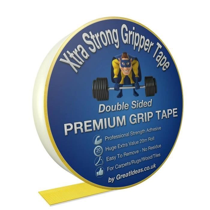 Protégé par un papier siliconé qui permet une application facile., Autocollant sans solvant. Adhésif Renforcé Gaze Adhésif Double Face Toilé 50mm X 25m - Permanent - Ruban Pour Moquette/tapis Ruban 50mm X 25m Il a une très forte adhérence sur toutes les surfaces telles que le carrelage, la céramique, le bois, le parquet. Ultra résistant]: idéal pour fixer la moquette, tapis, linoléum, tapis de sol, paillassons, taraflex. Rouleau de 25 m de long pour une largeur de 50 mm.