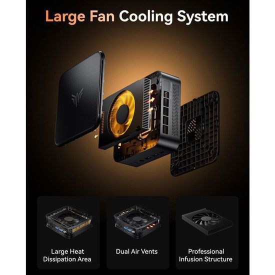 Il peut être connecté via les ports HDMI, DP 1., 2 et USB-C, offrant ainsi une connectivité illimitée et prenant en charge l'affichage triple écran 4K à 60 Hz. Il dispose également de deux ports Ethernet RJ45 2,5 GHz, assurant un transfert de données stable et rapide pour une connexion aisée aux serveurs, moniteurs, équipements de bureau, projecteurs, téléviseurs et autres appareils, sans latence. 【Service après-vente professionnel】Mini PC de bureau avec boîtier métallique, matériaux écologiques et conception écoénergétique. 2 2280, prenant en charge jusqu'à 2 To par emplacement pour une extension aisée, et offre des vitesses de traitement des commandes plus rapides. Test : mini PC NiPoGi E3B, processeur Ryzen 5 7430U, 32Go RAM et 512Go SSD 【Double LAN 2,5 GHz et Wi-Fi 6/Bluetooth 5., 0】Ce mini PC est doté d'une connectique complète : deux ports USB 3., 2, deux ports USB 2., 0, un port HDMI 2., 0, un port USB 3., 2 Type-C, un connecteur d'alimentation et une prise audio 3,5 mm. Son format compact lui permet de trouver facilement sa place sur un bureau ou dans un salon. Mini PC Ryzen 5 7430U avec Double LAN, 16 Go de RAM DDR4 512 Go PCIE 3.0 SSD, Mini Ordinateur de bureau à triple écran 4K, Win 11 Pro, Wi-Fi 6/BT 5.0 pour bureau à domicile/jeux/bureau Mini Computer Pour toute question, n'hésitez pas à contacter notre service client : nous vous offrons une assistance technique professionnelle 24 h/24 et 7 j/7. Grâce à son processeur basse consommation de 15 W, son refroidissement efficace et sa gestion intelligente des ventilateurs, ce mini PC est extrêmement silencieux (25 dB seulement). Profitez d'une connexion ultra-rapide et stable grâce au Wi-Fi 6 (trois fois plus rapide que le Wi-Fi 5) et d'une connexion sans fil encore plus rapide et fiable grâce au Bluetooth 5., 0., 【Conception professionnelle de dissipation thermique】Ce mini PC ne mesure que 12,8 x 12,8 x 4,5 cm et pèse 0,5 g. Double Lan 2.5g Wifi 6 Mini PC Ryzen 5 7430U Avec Double LAN, 16 Go De RAM DDR4 512 Mini PC Triple écran 4K HDMI DP USB-C Grâce à son processeur basse consommation de 15 W, son refroidissement efficace et sa gestion intelligente des ventilateurs, ce mini PC est extrêmement silencieux (25 dB seulement). Son format compact lui permet de trouver facilement sa place sur un bureau ou dans un salon. Préinstallé avec Win 11 Professionnel, il vous permet de... Vous n'avez donc aucun souci à vous faire concernant le produit.