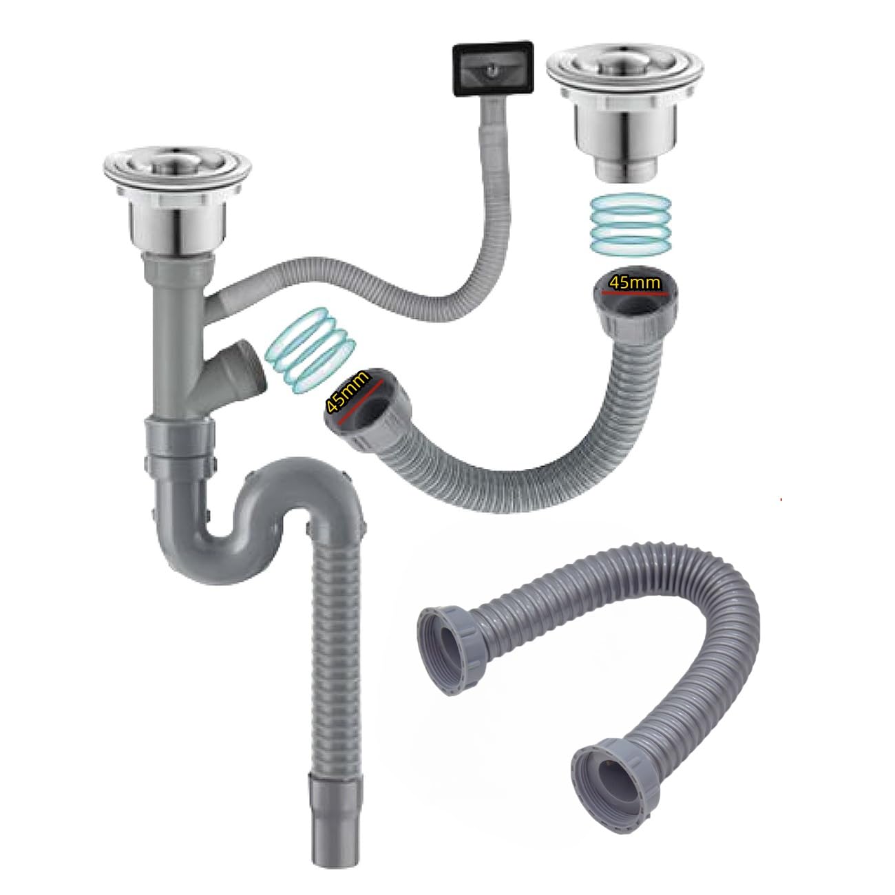 Evacuation Evier Kit De Tuyau De Vidange Pour évier De Cuisine SURENHAP - Double évier Double Siphon Evier Cuisine Caractéristiques : * Nom du produit : tuyau de vidange pour évier., *Matériau : plastique. Kit Vidange évier Siphon En P Flexible SUNXURY Kit De Vidange à Double Tuyau Pour évier De Cuisine, Vidange Joint Silicone étanchéité * Installation étanche : le kit comprend des bagues d'étanchéité en silicone qui offrent une barrière fiable contre les fuites d'eau, tandis que le mécanisme à pression de type S sécurise la forme du soufflet pour maintenir une étanchéité efficace. Design flexible pour les configurations sous l'évier : doté d'un tuyau ondulé fabriqué à partir de plastique flexible, ce tuyau de vidange d'évier s'étend de 20 cm à 80 cm, permettant une adaptation facile à différentes configurations sous l'évier Ce kit de vidange pour broyeur à déchets est conçu pour les éviers de cuisine avec un siphon en P de 1 1/2. Il inclut un tuyau d'évacuation spécial de 40 mm... Construction en plastique durable : fabriqué à partir de plastique de qualité professionnelle, ce piège en P est résistant à l'érosion pour une utilisation fiable au fil du temps. * Taille : peut s'étirer de 20 cm à 80 cm., Couleur : blanc. Installation fiable et étanche : les bagues d'étanchéité en silicone sont incluses pour créer une barrière solide contre les fuites, complétées par un mécanisme à pression de type S qui assure une étanchéité efficace. * Bonne construction : fabriqué à partir de plastique de qualité professionnelle, ce piège en P offre une excellente résistance à l'érosion, assurant une longue durée de vie. Contenu de l'emballage : 1 tuyau de vidange d'évier (adaptateurs et joints d'étanchéité). Caractéristiques : *Compatibilité polyvalente : ce siphon en P est conçu pour connecter les tuyaux de 3,8 cm et 3,8 cm, ce qui en fait une bonne solution pour divers systèmes de drainage, y compris les éviers de cuisine et les lavabos de salle de bain.