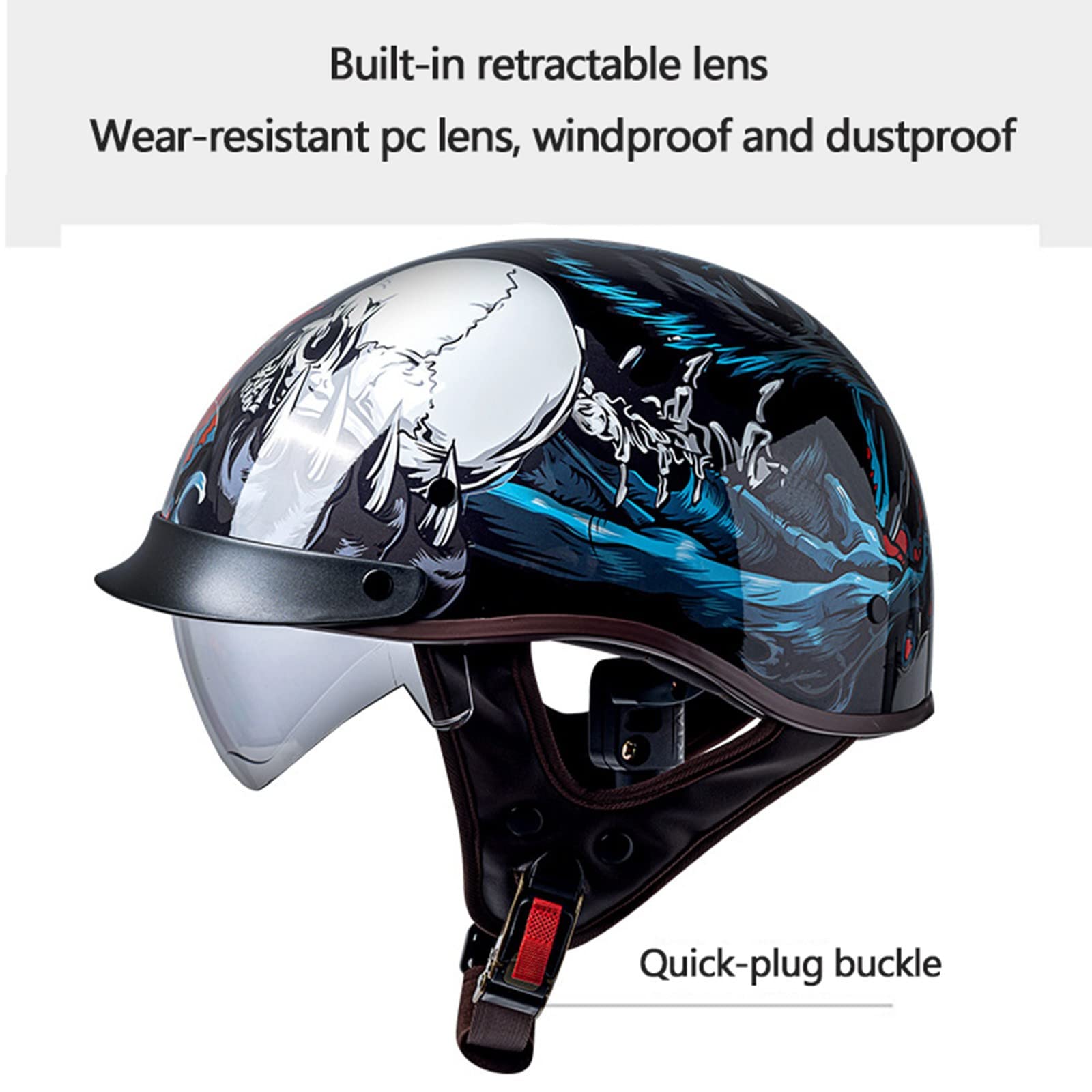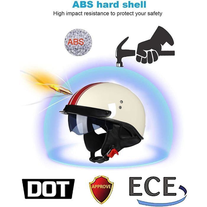 Système de double visière : la visière intégrée protège le pilote du soleil. Matériau de haute qualité : La coque de ce demi-casque est fabriquée en ABS de haute qualité, anti-collision et très résistant aux chocs. Casque Scooter Retro Style Casque Moto Jet Vintage 3/4 Casque Moto Avec Double Visière Pour Scooter Chopper, Casque De Moto Demi-Jet Homme Et Femme ECEDOT Homologué 1,M=57~58 Casque Rétro Double Visière Casque de moto Stormer SPIRIT Vintage Jet avec visière intérieure noire... La couche tampon est en polystyrène EPS haute densité. Convient pour les fêtes de moto/décoration/photographie de rue, c'est un choix parfait pour les cadeaux du Nouvel An, les cadeaux d'anniversaire, les cadeaux de Noël, les cadeaux amusants et les casques de couple. Si vous avez des questions avant ou après votre achat, n'hésitez pas à m'envoyer un e-mail. Si votre casque ne vous convient pas, veuillez nous contacter et nous ferons de notre mieux pour résoudre le problème. Le système de ventilation, la visière extérieure et la visière transparente sont facilement réglables, même avec des gants. Caractéristiques : casque léger, résistant à l'usure, aux chocs et aux collisions, en plastique ABS haute dureté ; couche tampon en EPS haute résistance ; doublure confortable, amovible et lavable. La visière transparente anti-rayures vous protège du vent fort, du soleil, de la poussière et des débris pendant la conduite. Nom : Demi-casque rétro, casque ouvert Matériau : ABS Tour de tête : M (57-58 cm/22,4-22,8 pouces), L (59-60 cm/23,2-23,6 pouces), XL (61-62 cm/24-24,4 pouces), XXL (63-64 cm/24,8-25,2 pouces) Saison applicable : toutes les saisons Genre : unisexe, neutre Conseils: L'erreur de mesure manuelle est de 1 à 2 cm et le produit est soumis au produit réel. Jet Casque De Moto Dot Homologué Ouvert Casque Cruiser Moped Scooter... Système de ventilation performant : ce casque de moto léger est doté d'une entrée et d'une sortie d'air réglables pour une meilleure circulation de l'air pendant la conduite, vous offrant ainsi un confort optimal. Comment choisir la bonne taille : Ce casque est disponible en plusieurs tailles : M (57-58 cm), L (59-60 cm), XL (61-62 cm) et XXL (63-64 cm). Système de fixation rapide pour une protection optimale. Casque retro jet – Trouvez le meilleur prix