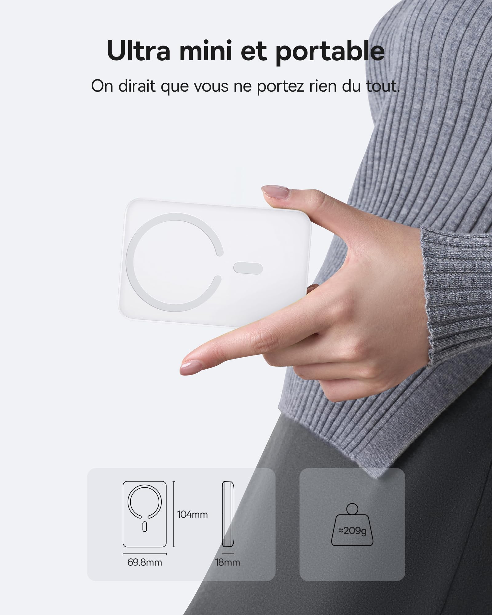 La batterie externe reste fermement attachée à votre appareil, peu importe où vous allez Un gadget de voyage indispensable. Contenu : 1 batterie externe Magsafe, 1 câble USB-C vers USB-C. Forte force magnétique : la batterie externe Magsafe pour iPhone est équipée d'aimants en néodyme N52 qui offrent une force magnétique de 3500GS et adhèrent fermement à l'arrière de l'iPhone. Powerbank Baseus Enerfill MagSafe wireless 10000mAh a €26 | Aberto até Charge sûre : cette batterie externe magnétique USB-C est alimentée par une puce IA Baseus de qualité supérieure, qui dispose d'un système intelligent intégré et de circuits de sécurité. La batterie externe Magsafe prend en charge la charge sans fil de 15 W et la charge filaire de 22,5 W pour téléphone Android. Charge sans fil rapide]La powerbank Baseus magsafe est idéale pour la série iPhone 15/14/13/12, offrant une charge sans fil de 7,5 W et une charge... (Même après l'expiration du délai de retour) Charge rapide sans fil : la batterie externe Magsafe Baseus est idéale pour les séries iPhone 15/14/13/12, offre une charge sans fil de 7,5 W et une charge rapide PD de 20 W avec câble. Notre batterie externe est également équipée d'un port USB-C pour charger différents appareils. Charge Sans Fil IPhone 15 14 13 12 Baseus 2 En 1 Magsafe Powerbank 10000mAh 27W Anneaux Magnétique Doubles, Wireless Power Bank USB C Rapide Chargeur Sans Fil Compatible Avec IPhone 12-16, Apple Watch Series 1-10, Ultra Et SE, AirPods Chargeur Portable Sans Fil 10000mAh Force magnétique puissante de 4200Gs : Cette batterie externe magnétique s'attache solidement à votre téléphone, assurant une stabilité optimale pendant la... Si vous avez des questions, n'hésitez pas à nous contacter.